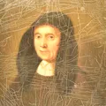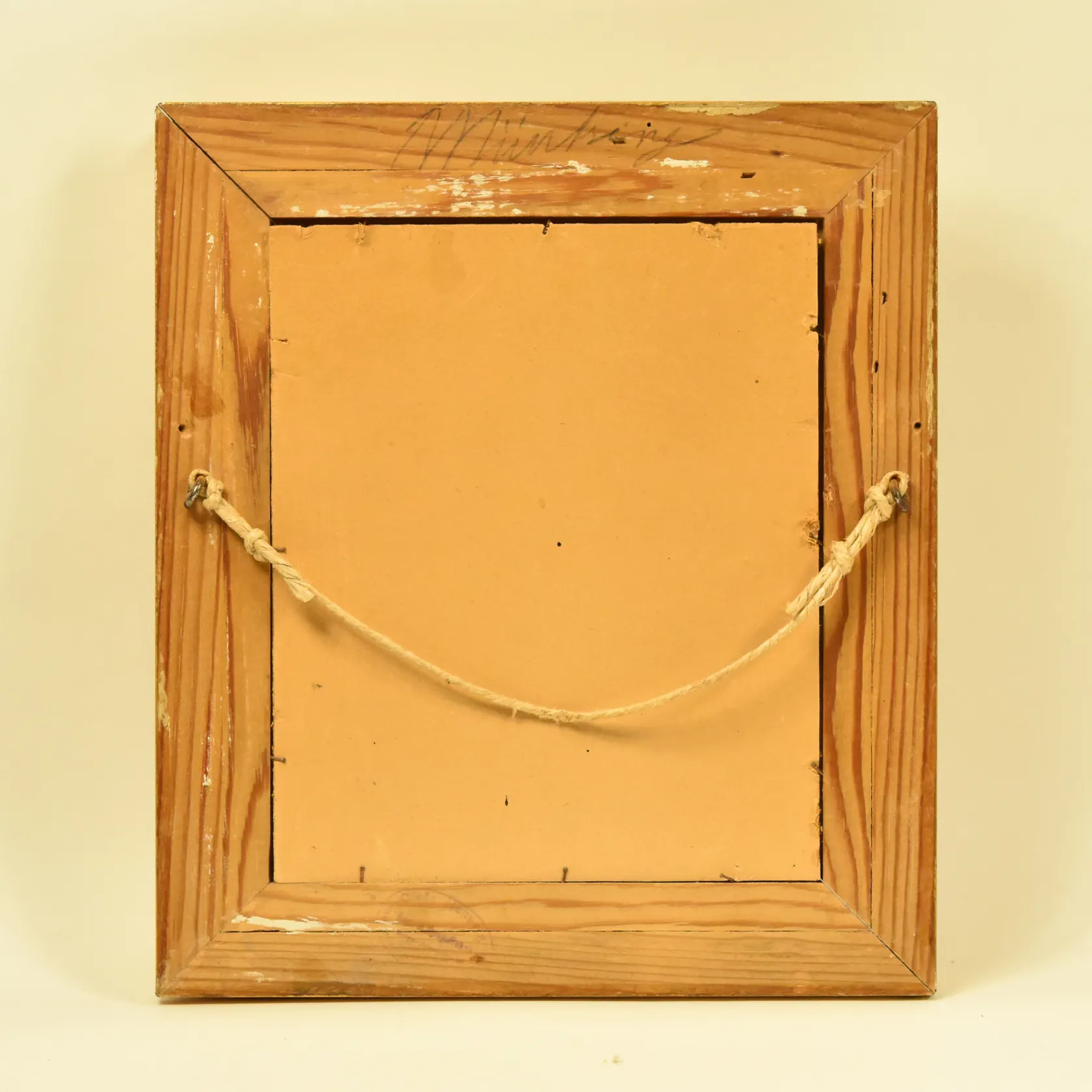 Tavla, troligen oljetryck på kartong, kraftiga krackeleringar, yttermått stl 20½ x 23½ cm, förgylld träram med slitage/skador.