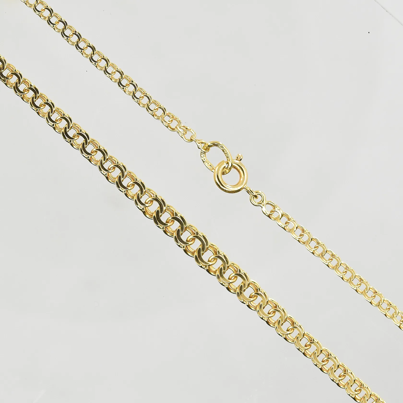 Collier Bismarck, doserad, längd 44½ cm, bredd 2-4 mm, 18K. Vikt: 6 g.