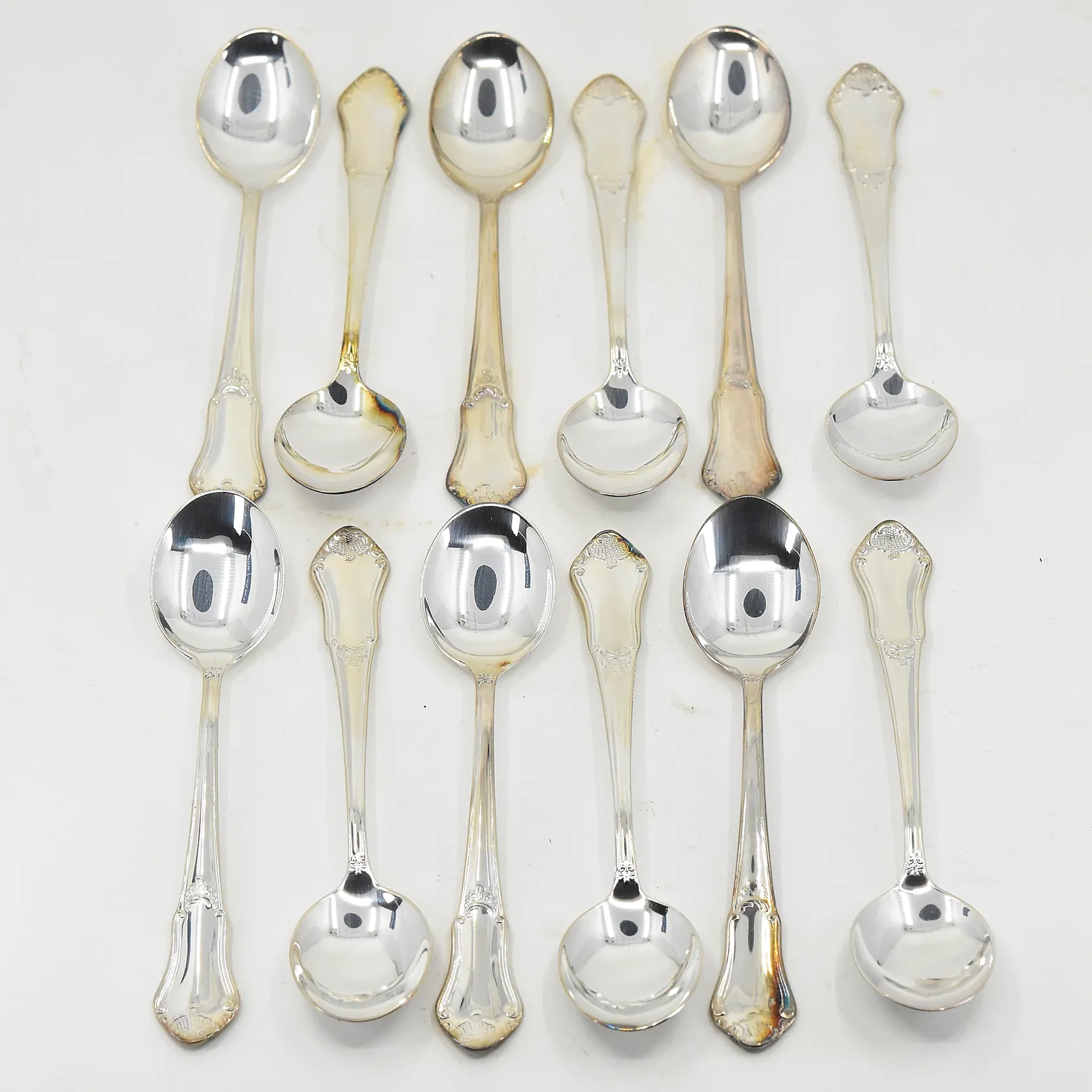 12 mockaskedar, modell Eva, MEMA, längd ca 11 cm, fint skick, 830/1000 silver. Vikt: 179,3 g.