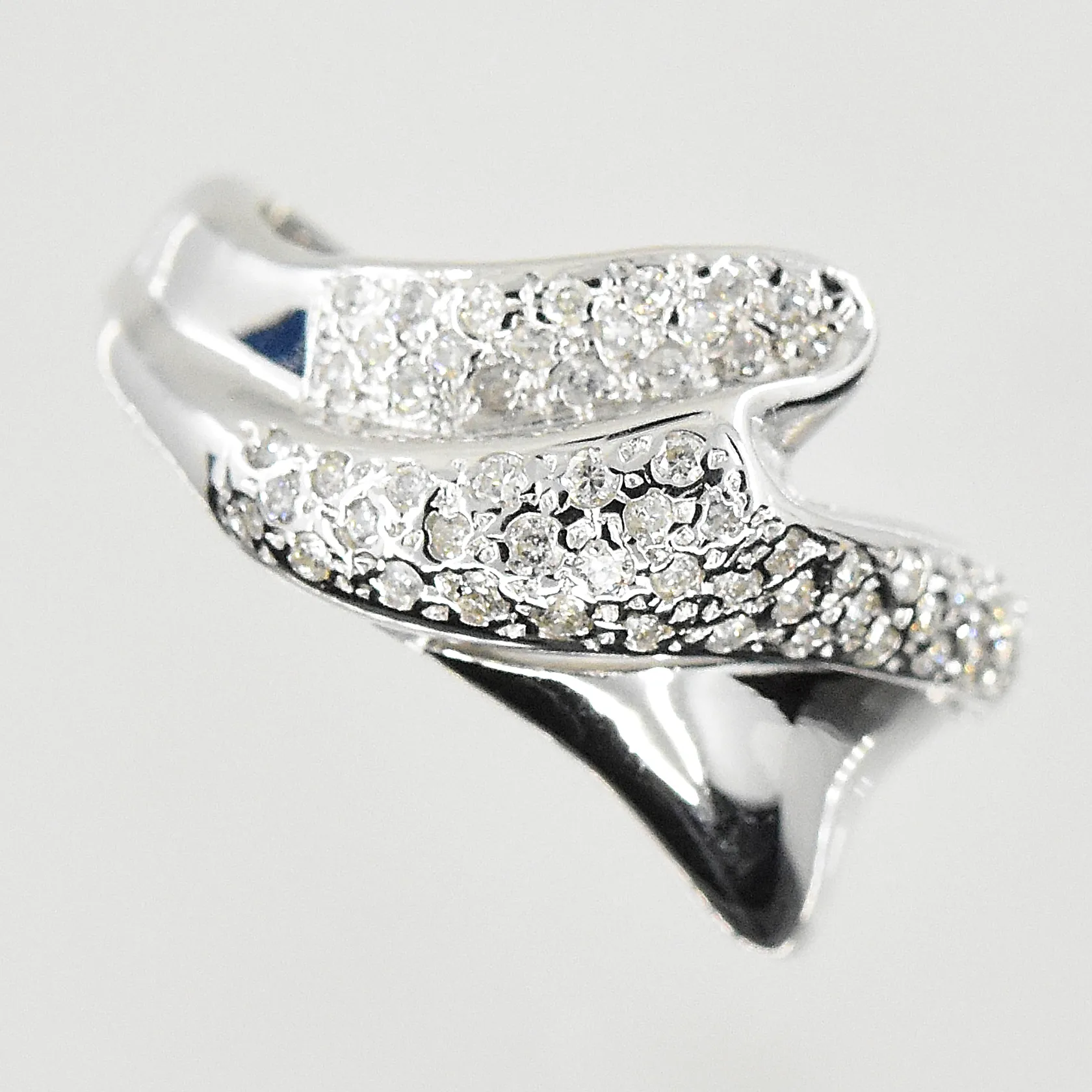 Ring med diamanter ca 0,40ctv, stl 18¾, bredd 4-12 mm, vitguld, 18K. Vikt: 5,6 g.