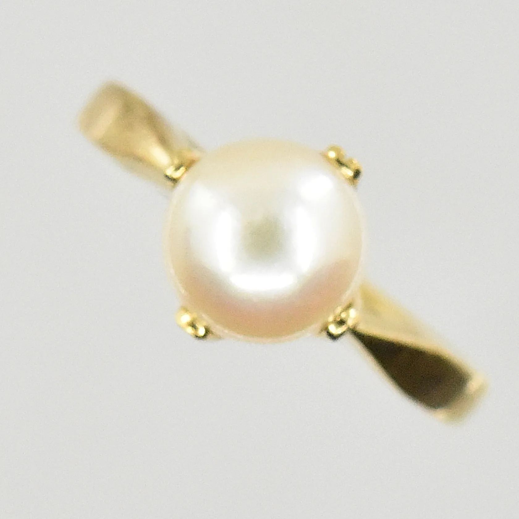 Ring med pärla Ø7 mm, stl 16½, bredd 2-8 mm, 18K. Vikt: 3,3 g.
