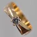 Ring med diamant 0,23ct, stl 19, bredd 4-6 mm, graverad, 18K. Vikt: 6,5 g.
