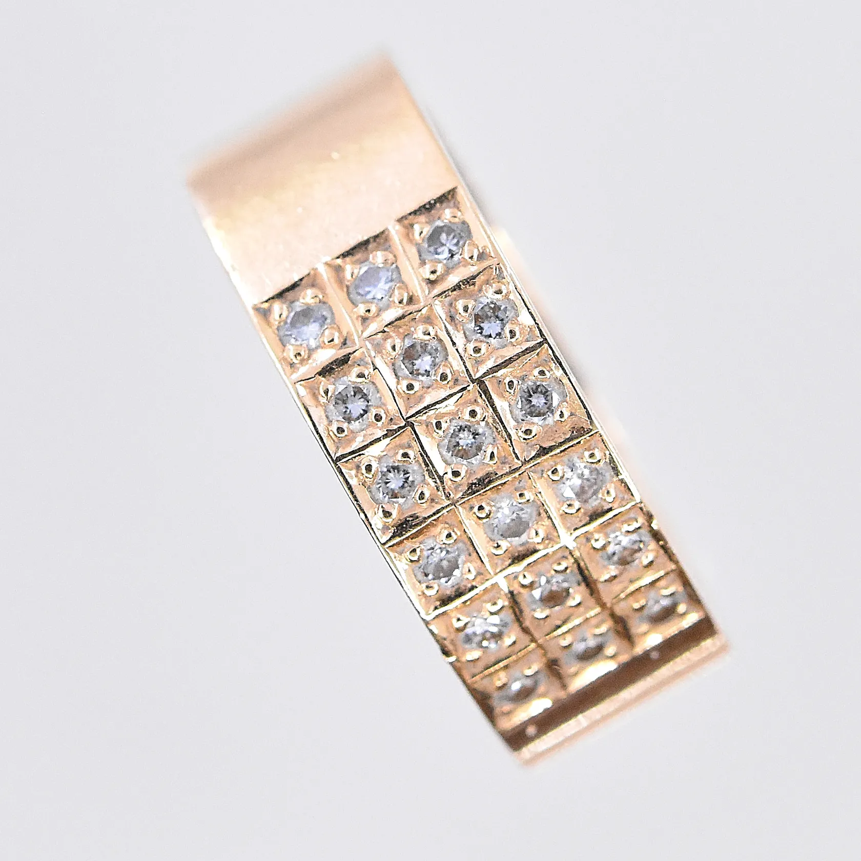 Ring med diamanter 0,36ctv enligt gravyr, stl 17, bredd 7 mm, 18K. Vikt: 9,5 g.