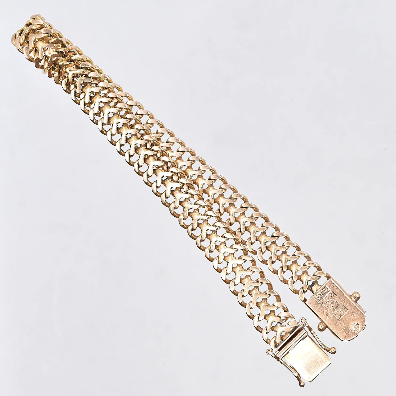 Armband Fiskbenslänk, längd 19,5 cm, bredd 8 mm, 18K. Vikt: 19,4 g.