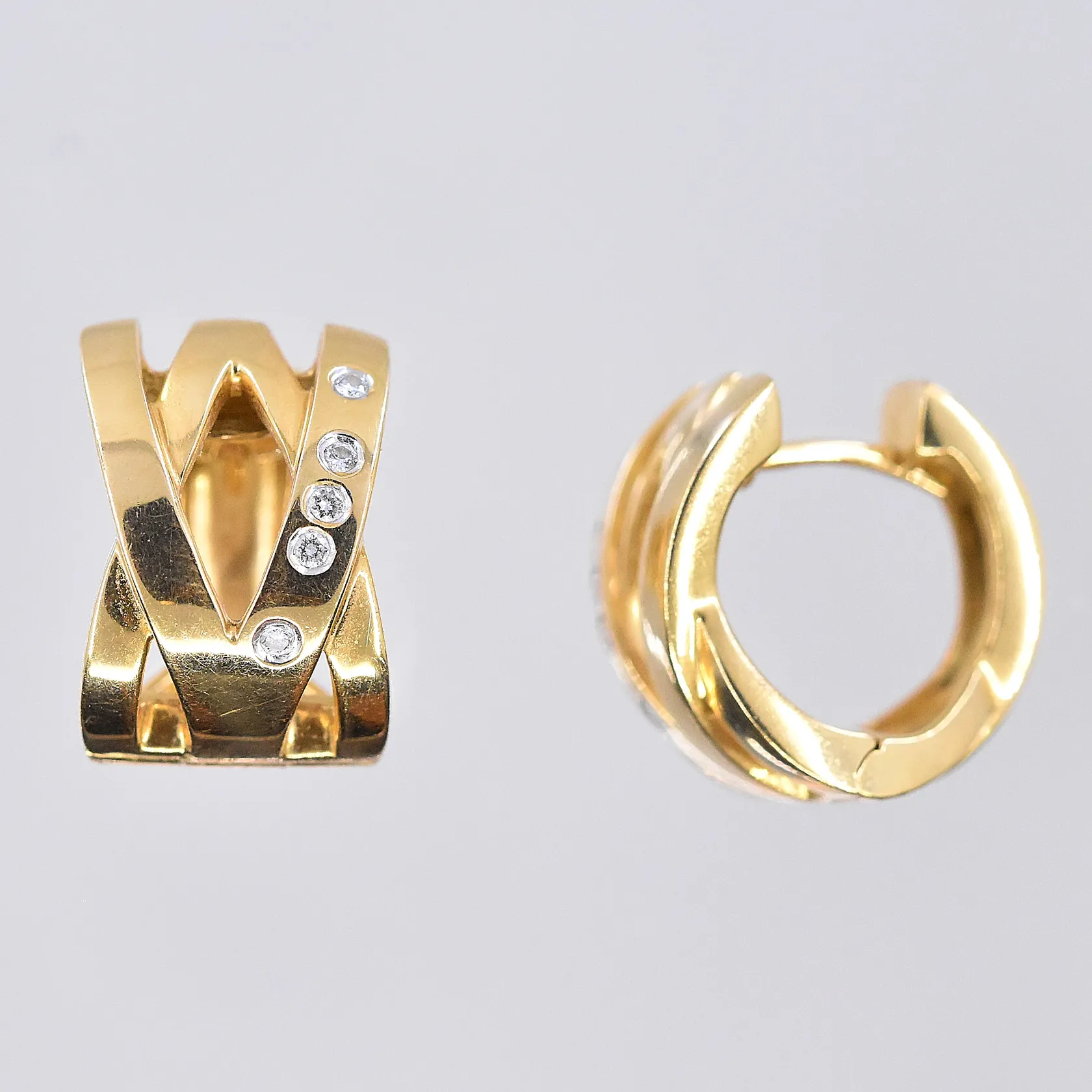 Ett par örhängen med diamanter 0,10ctv, Nina Ricci, Ø10 mm, bredd 10 mm, 18K. Vikt: 8,2 g.