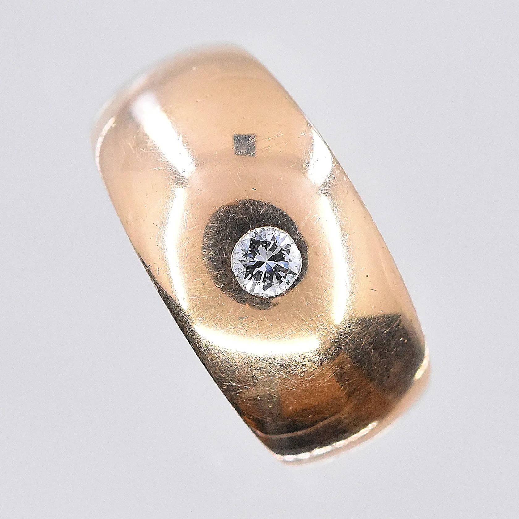 Ring med diamant 0,15ctv enligt gravyr, stl 19¼, bredd 6-11 mm, 18K. Vikt: 10,9 g.