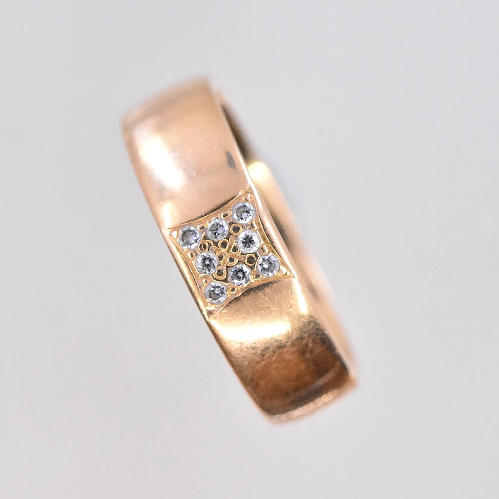 Ring med diamanter 0,08ctv enligt gravyr, Schalins, stl 18, bredd 6 mm, graverad, 18K. Vikt: 6,8 g.