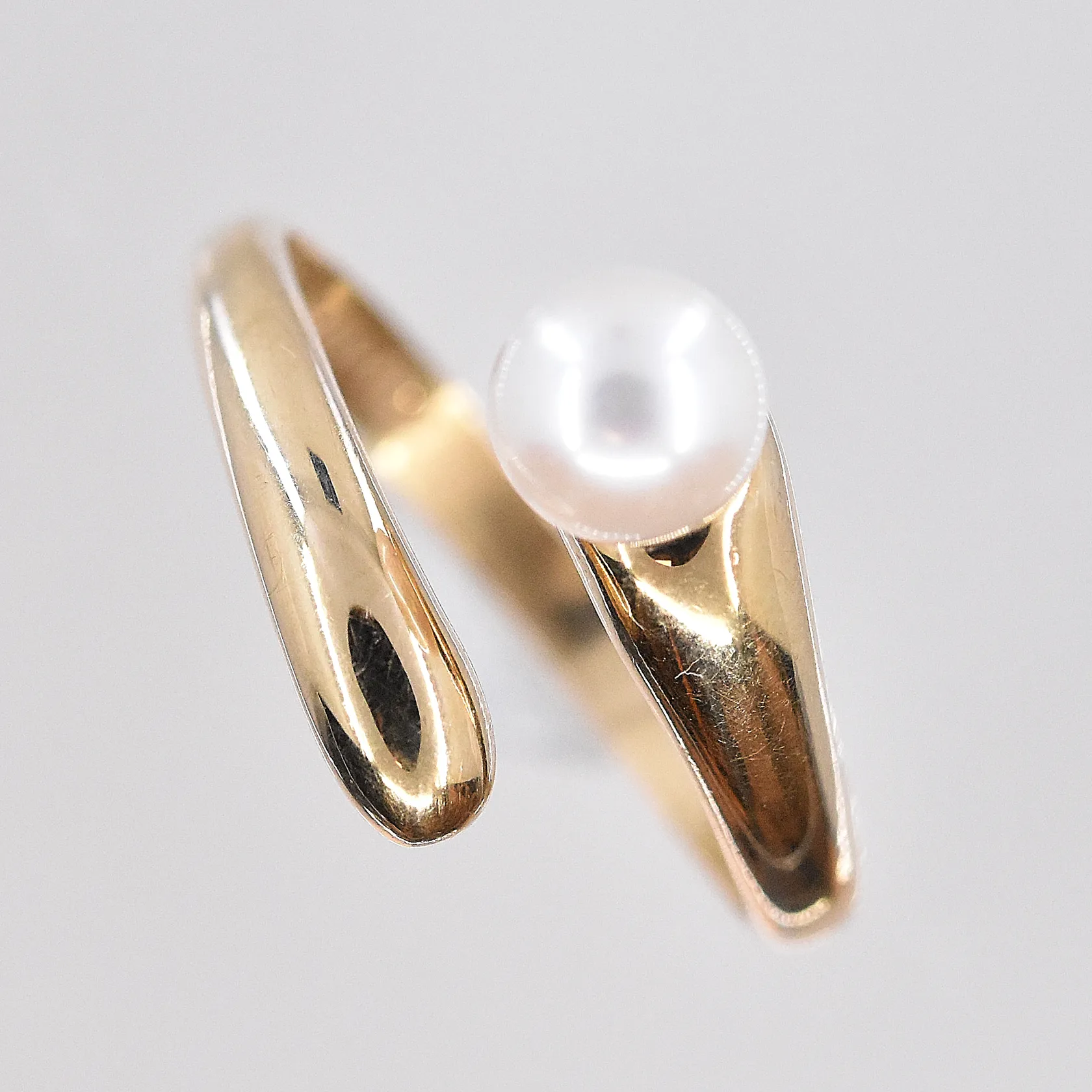 Ring med pärla, stl 17½, bredd 2 mm, pärlans Ø6 mm, 18K. Vikt: 2,5 g.