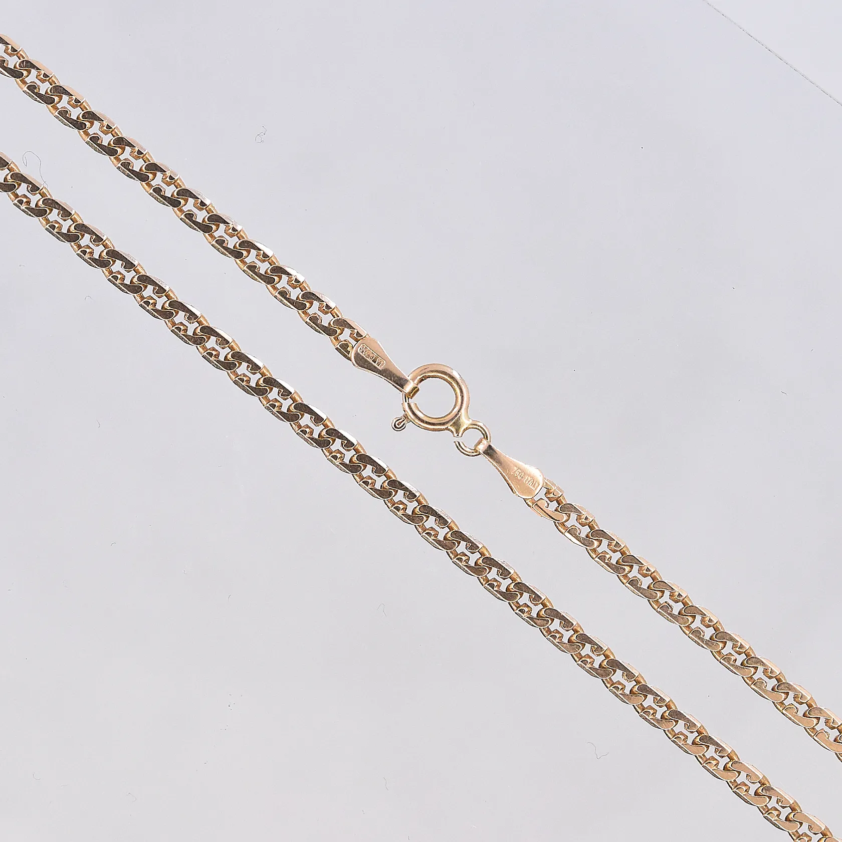 Kedja Pansar modell, längd 42,5 cm, bredd 3 mm, 18K. Vikt: 10,3 g.