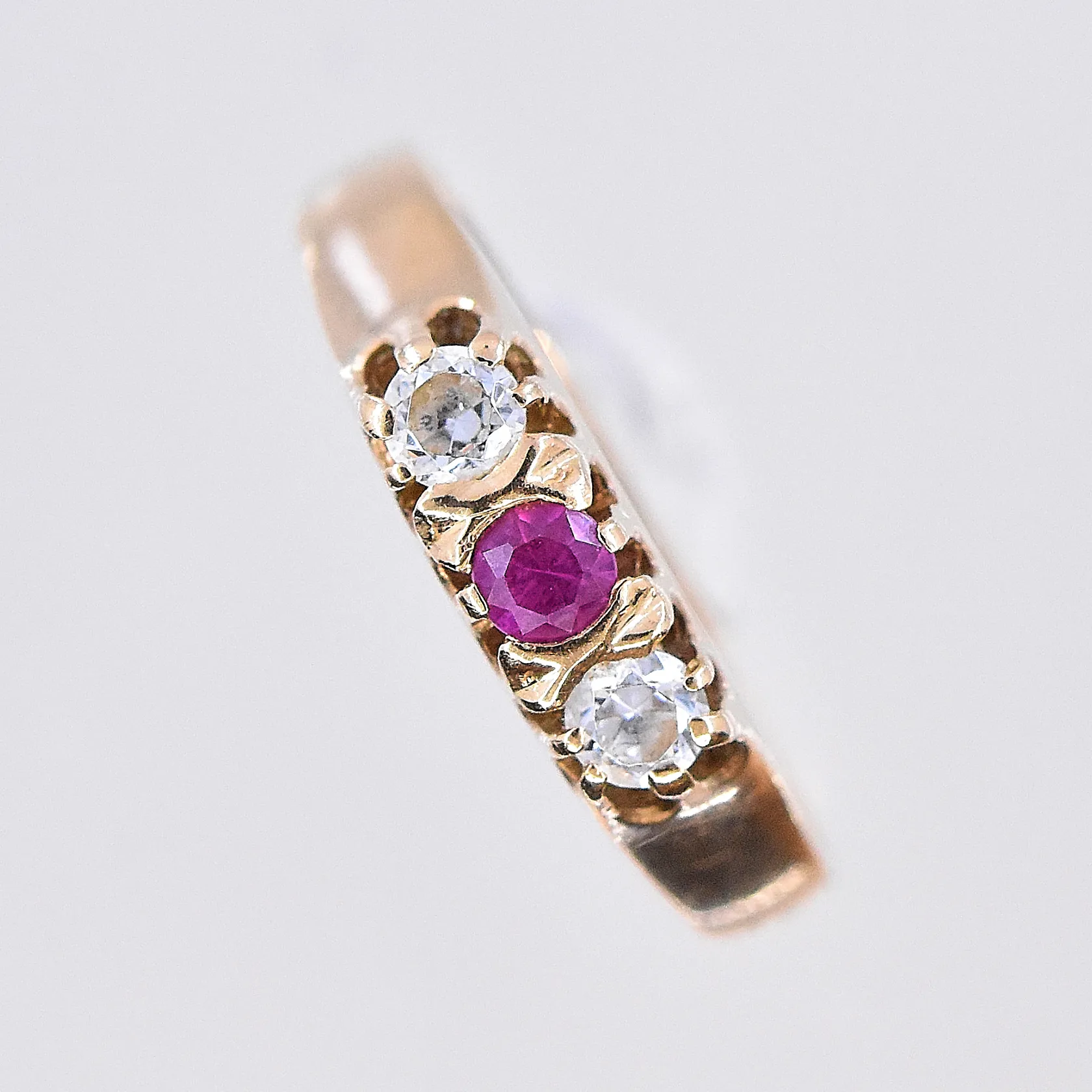 Ring med vita och Cerise sten, stl 17¾, bredd 2 mm, 18K. Vikt: 2,6 g.