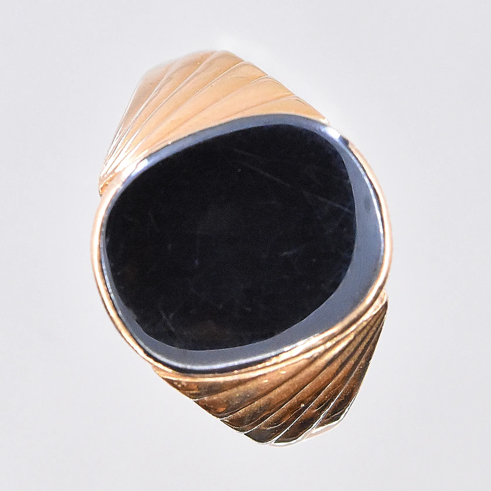 Klackring med Onyxplatta, stl 20, bredd 3-16 mm, 18K. Vikt: 8,4 g.