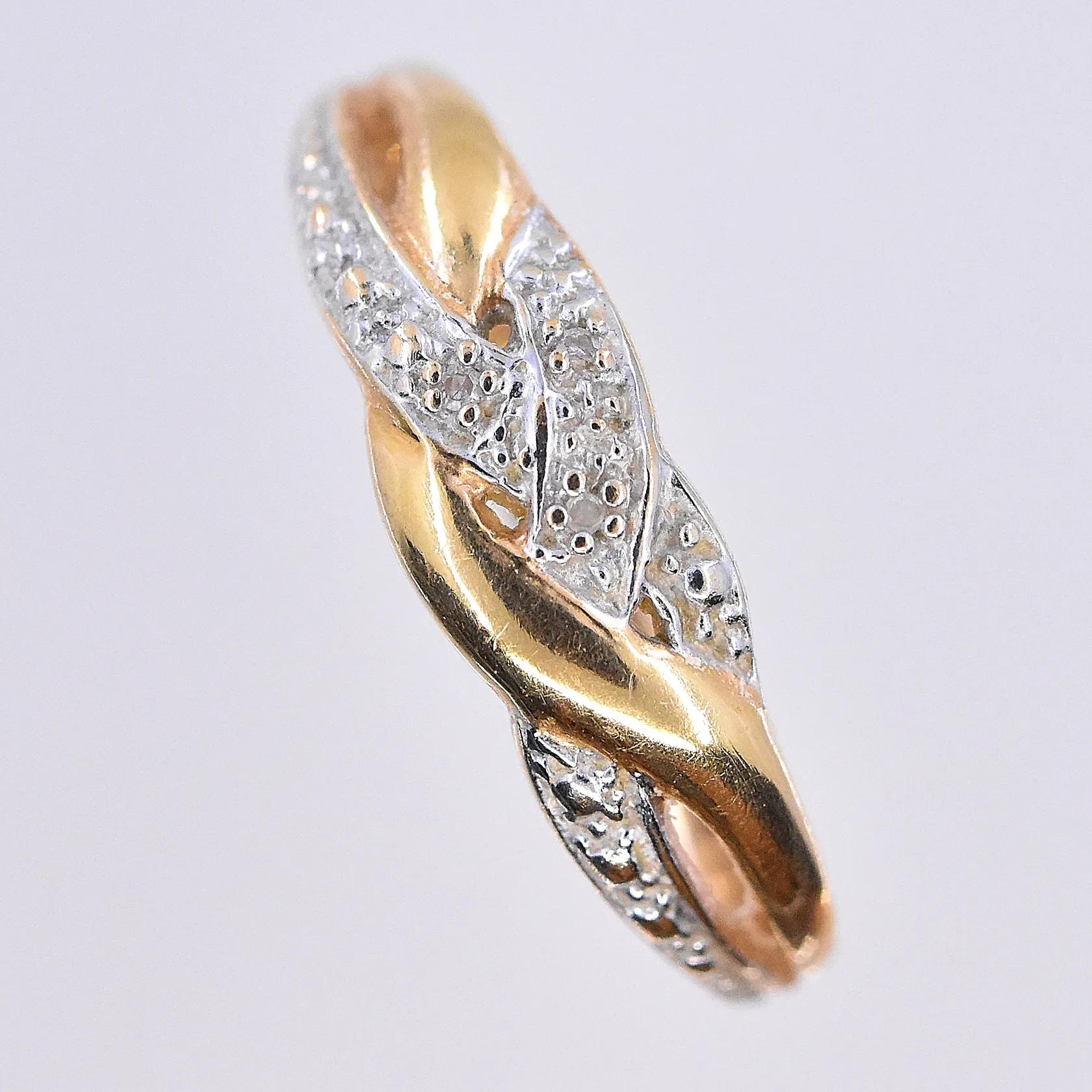 Ring med vita stenar, stl 18, bredd 2-6 mm, 18K. Vikt: 2,8 g.