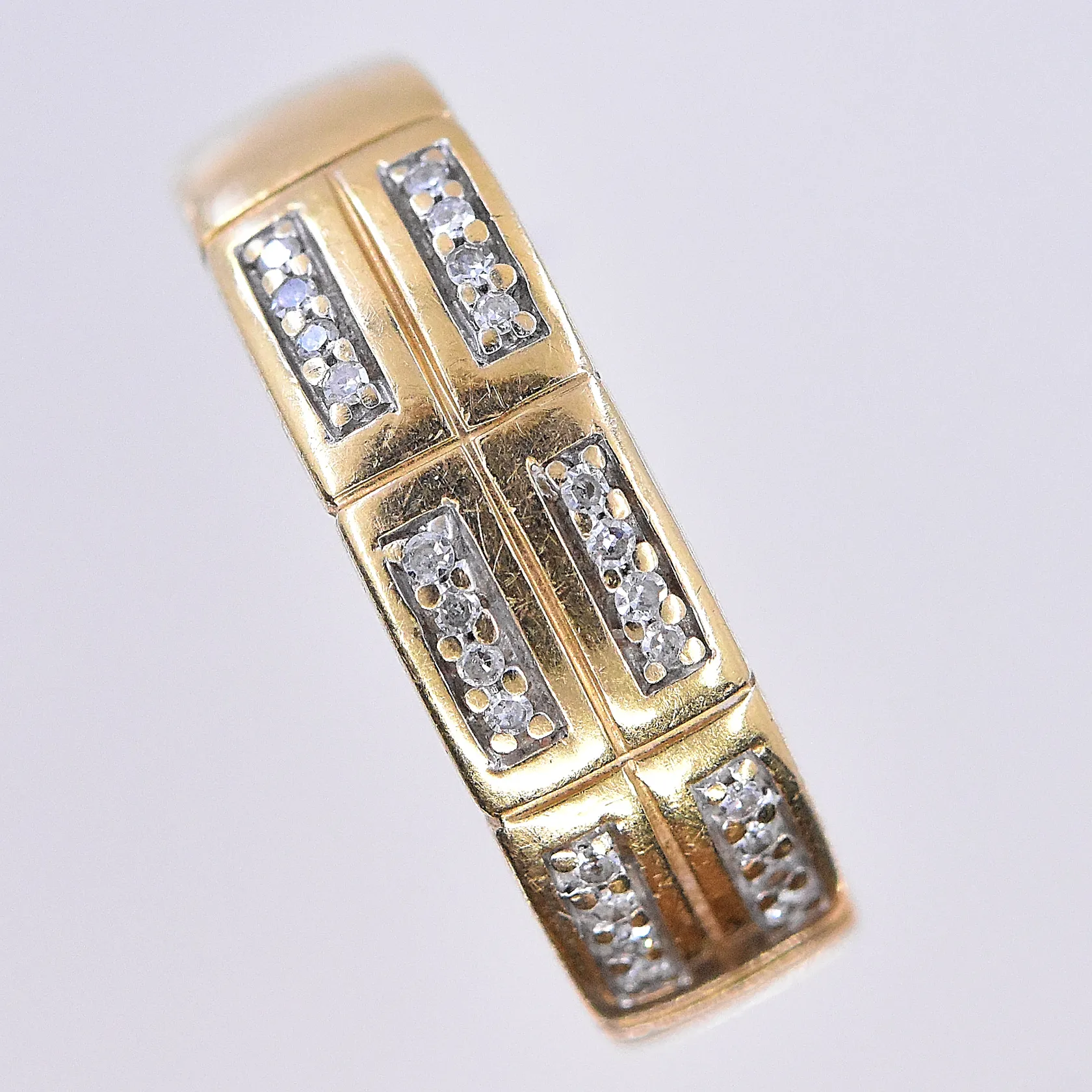 Ring med diamanter 0,10ctv enligt gravyr, Guldfynd, stl 18, bredd 3-6 mm, 18K. Vikt: 4,6 g.
