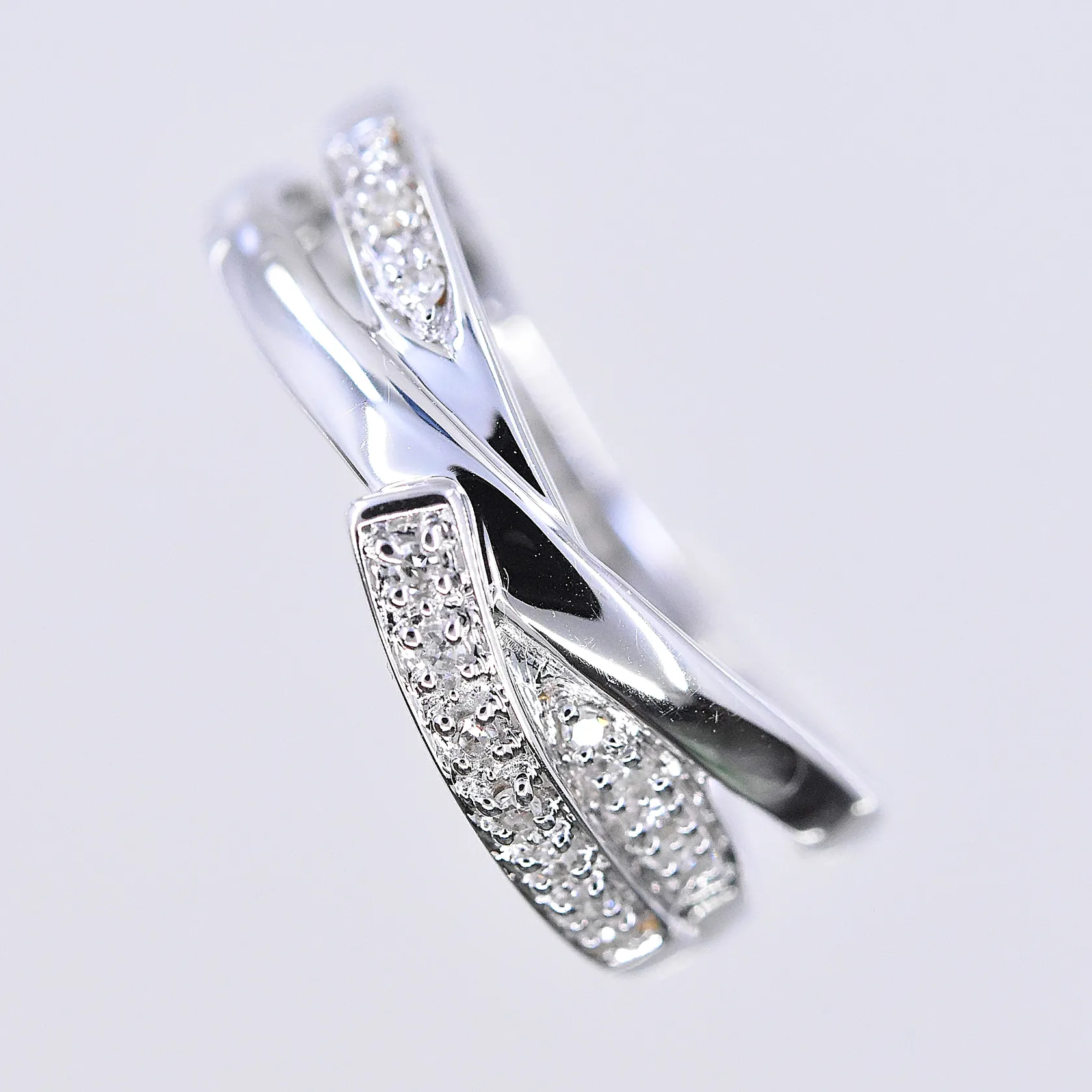 Ring med vita stenar, Guldfynd, stl 20, bredd 2-8 mm, vitguld, 18K. Vikt: 4,8 g.