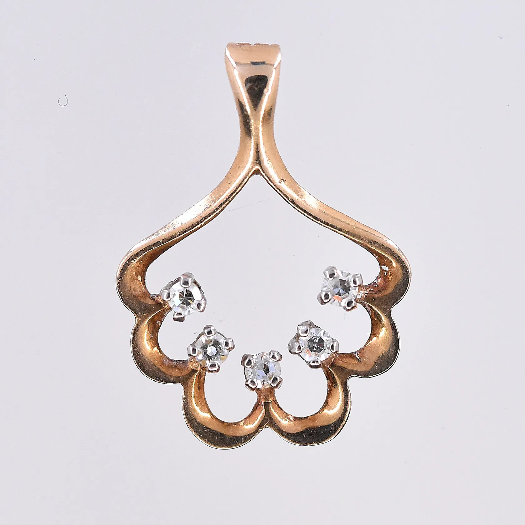 Hänge med vita stenar, längd 20 mm, bredd 15 mm, 18K. Vikt: 1,1 g.