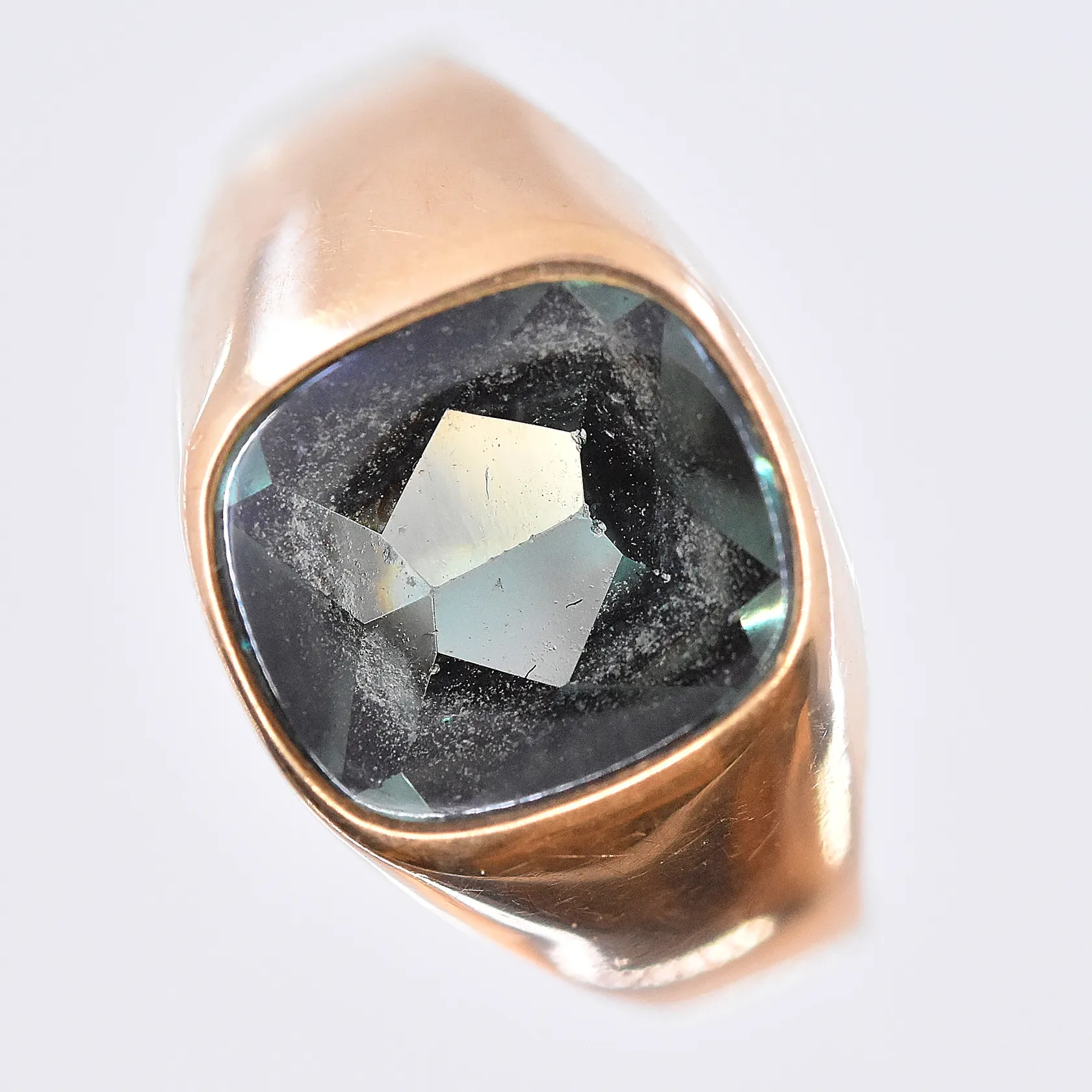 Klackring med grön sten, stl 20½, bredd 3-13 mm, 18K. Vikt: 4,8 g.