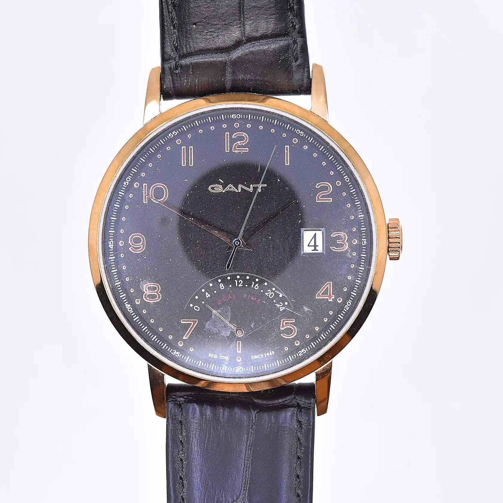 Herrur Gant, quartz, datum, Ø42 mm, svart läderband, stål.