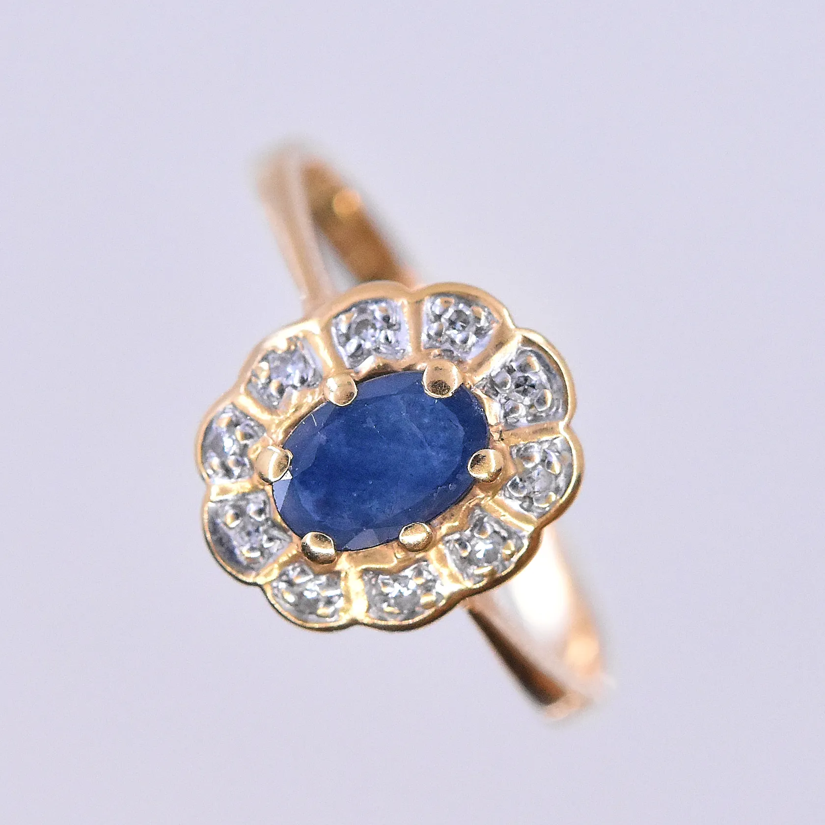 Ring med blå sten och vita stenar, stl 16½, bredd 2-10 mm, 18K. Vikt: 2,4 g.