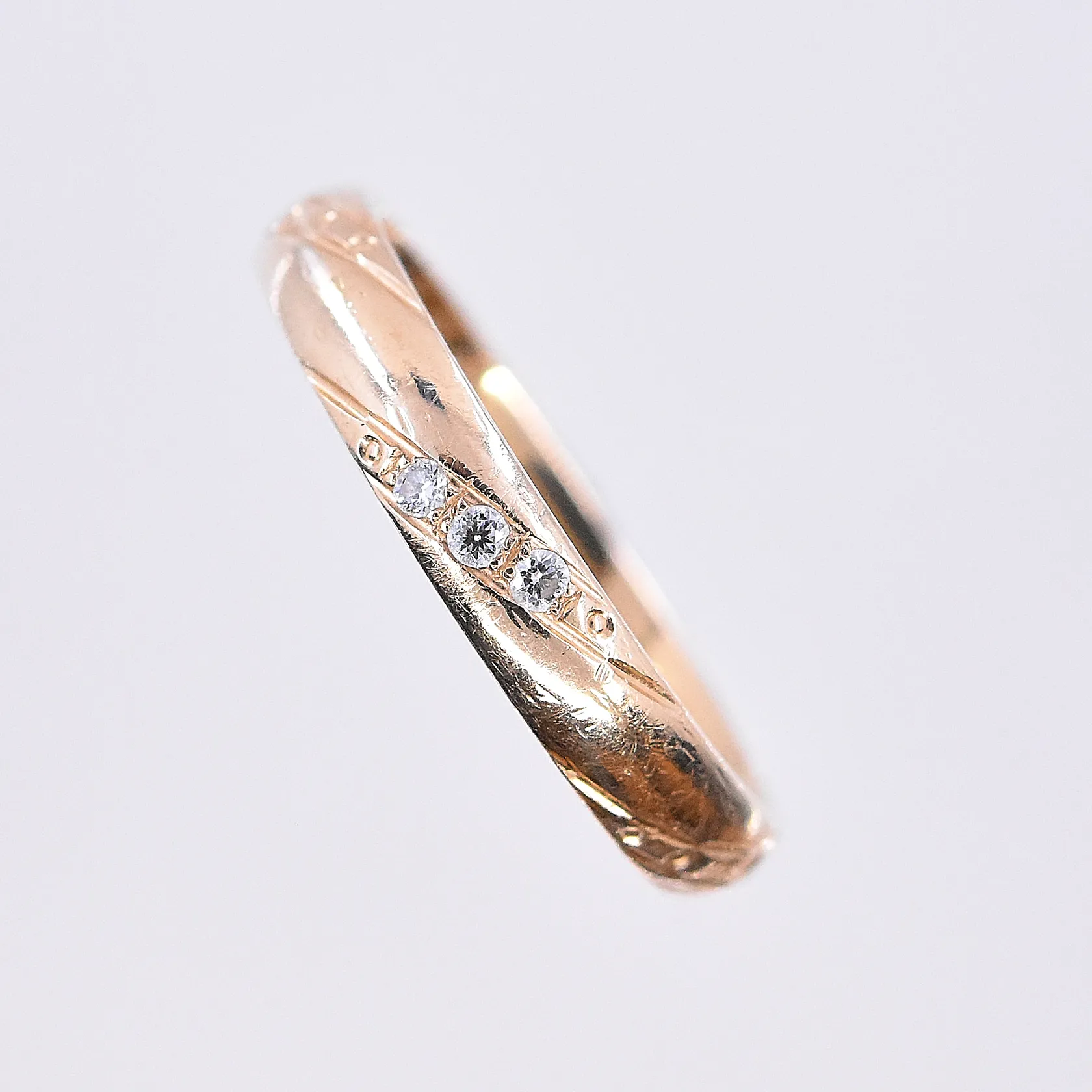 Ring med diamanter 0,045ctv enligt gravyr, stl 18¼, bredd 3 mm, 18K. Vikt: 3,8 g.