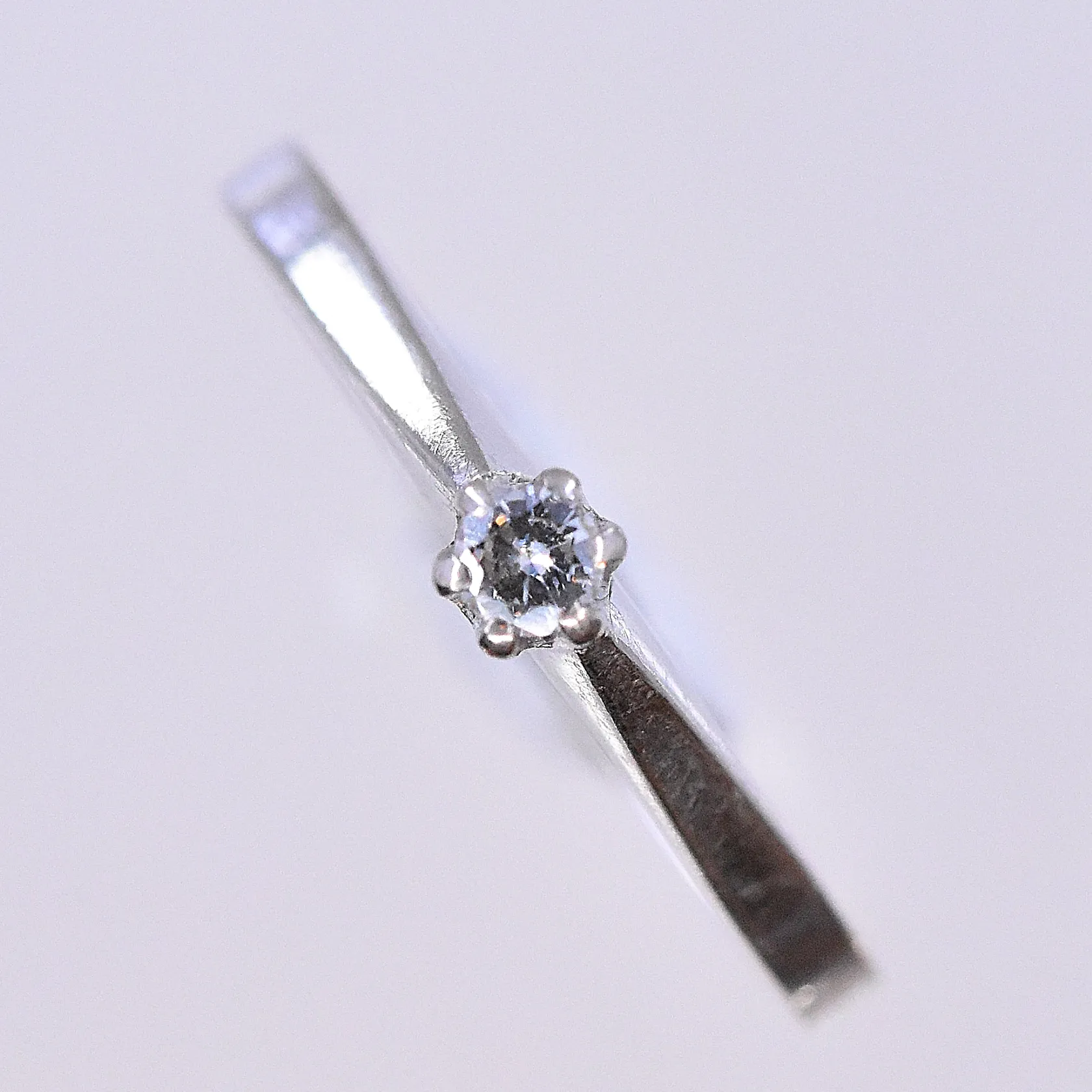 Ring med diamant 0,07ctv enligt gravyr, stl 18, bredd 2 mm, vitguld, 18K. Vikt: 2,2 g.