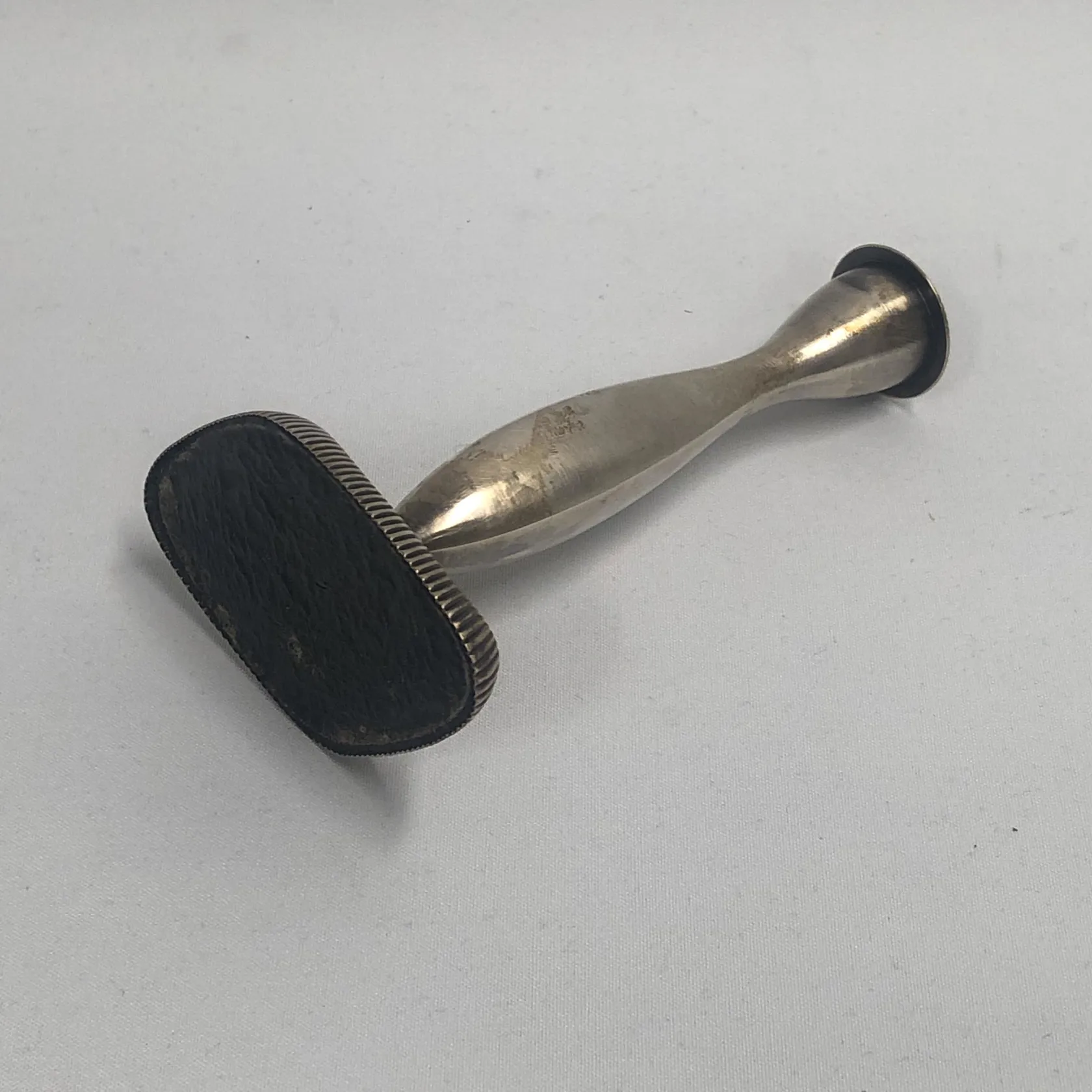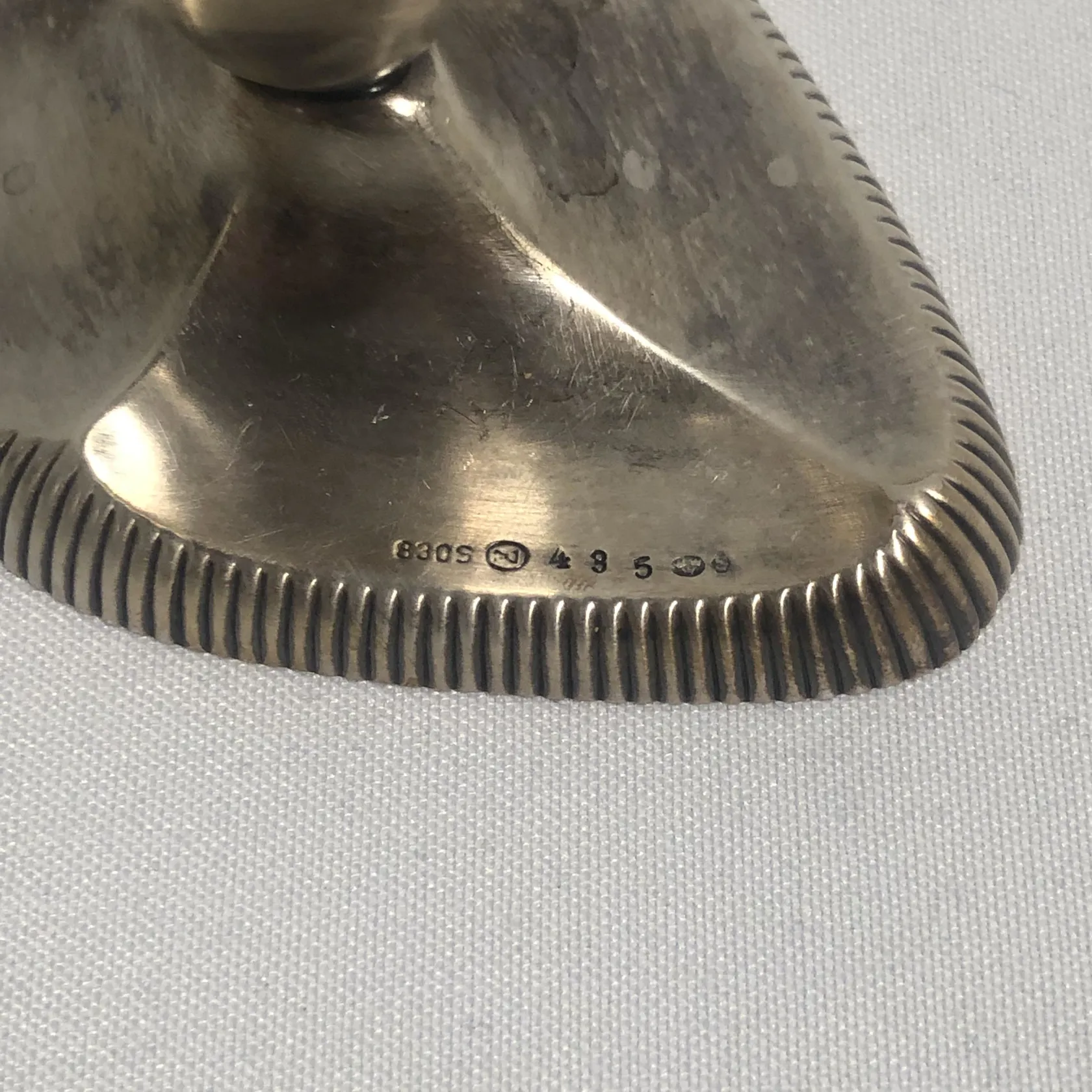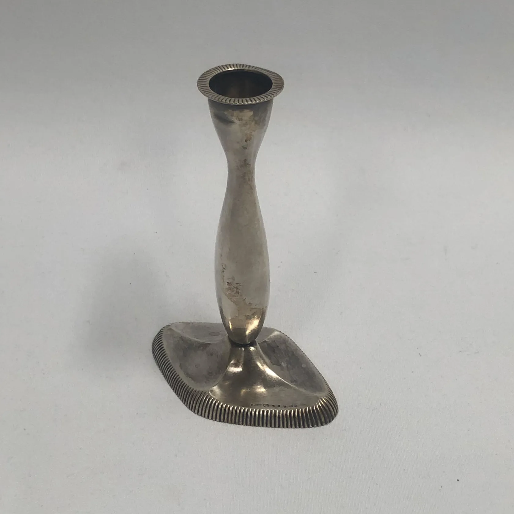 Ljusstake, höjd ca 15cm, foten ca 10x6,5cm, fylld botten, bucklig, silver 830/1000 Bruttovikt: 86,7g Vikt: 86,7 g.