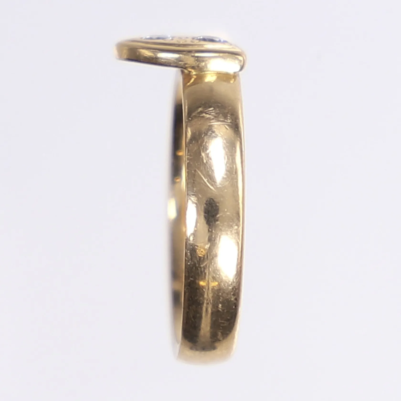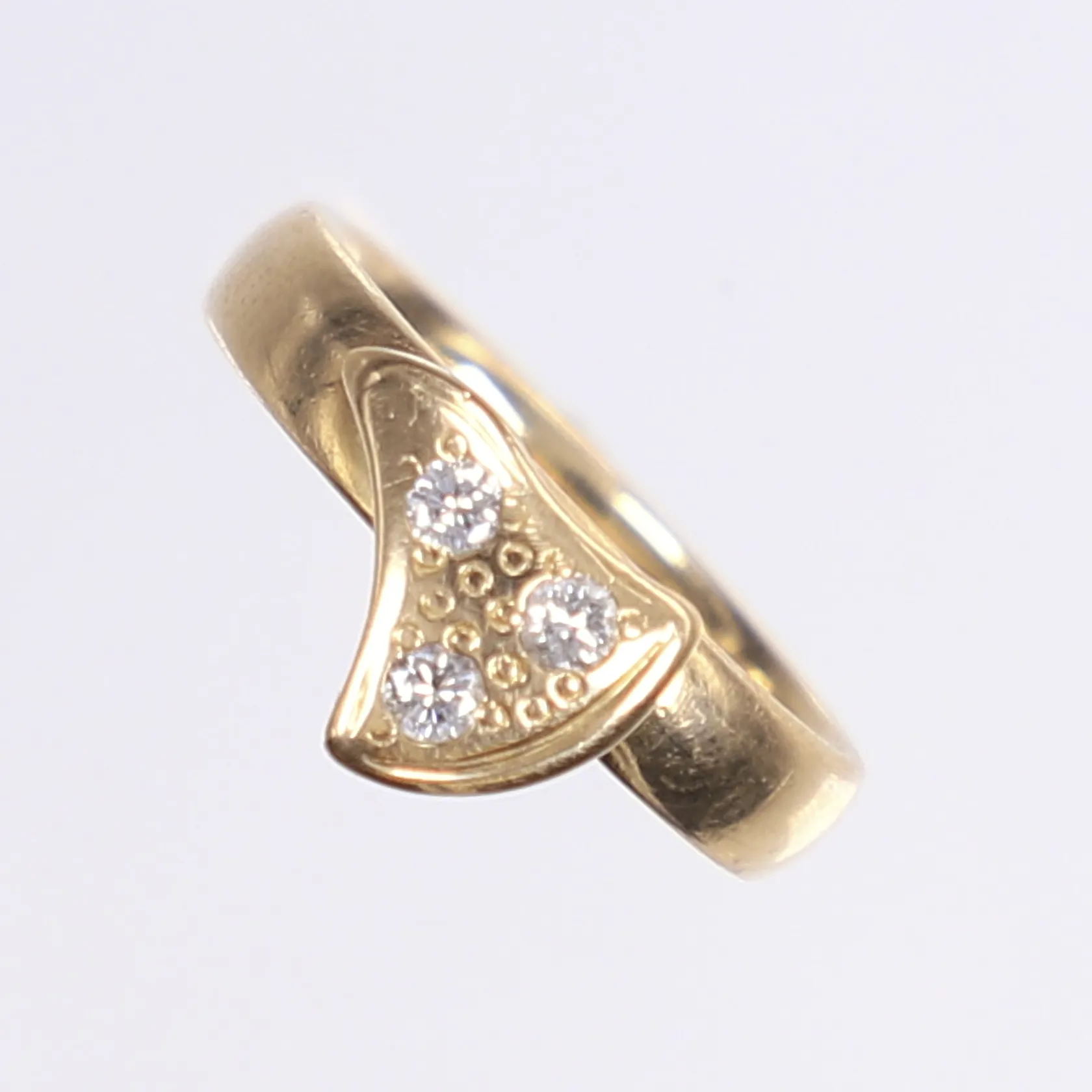 Ring med diamanter totalt 0,15ctv enl. gravyr, stl 16¾, bredd 4-8mm, 18K Vikt: 5,4 g.