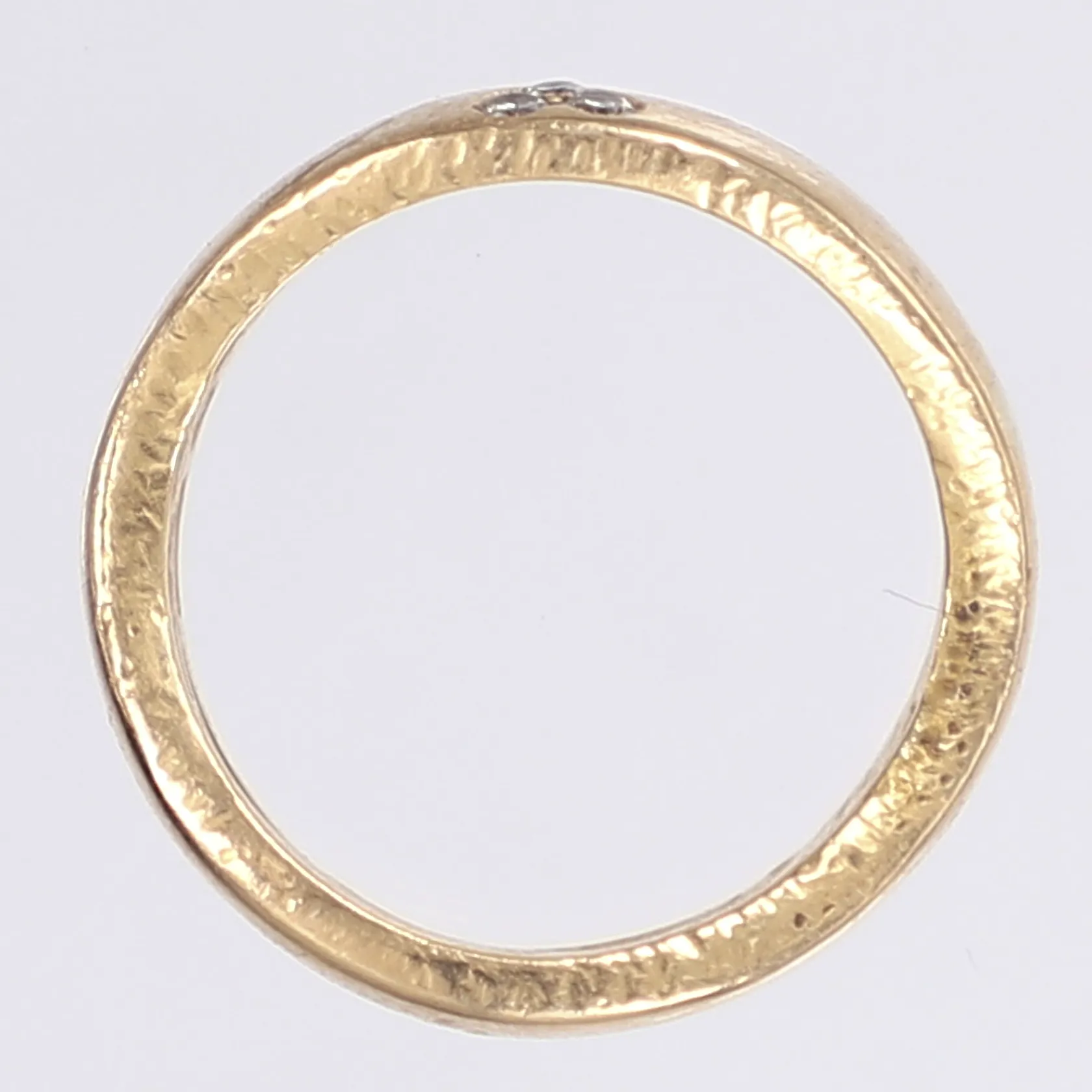Ring med diamanter 3 x ca 0,01ct, stl 17, bredd 5mm, personlig gravyr, slitage, 18K Vikt: 7,5 g.
