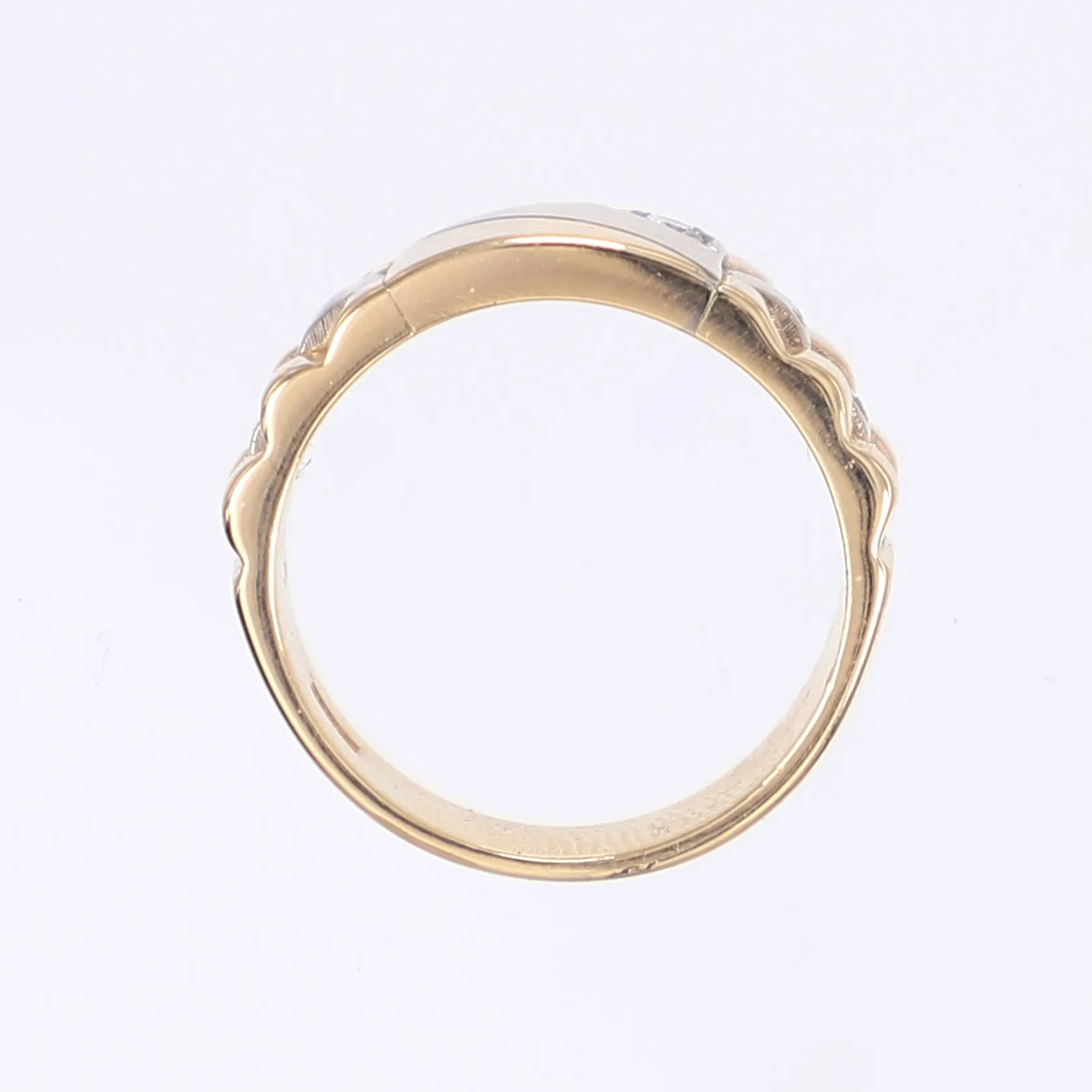 Ring med diamant 1x ca 0,03ct, stl 17¼, bredd 6-9mm, rödguld/vitguld 18K Vikt: 10,3 g.