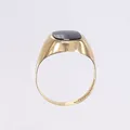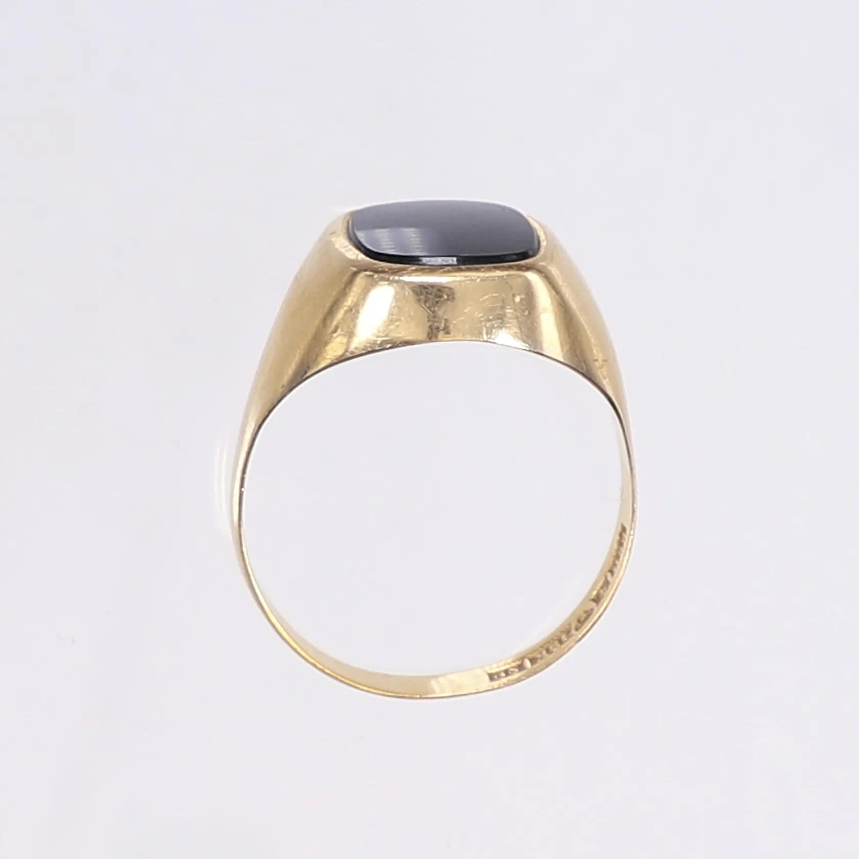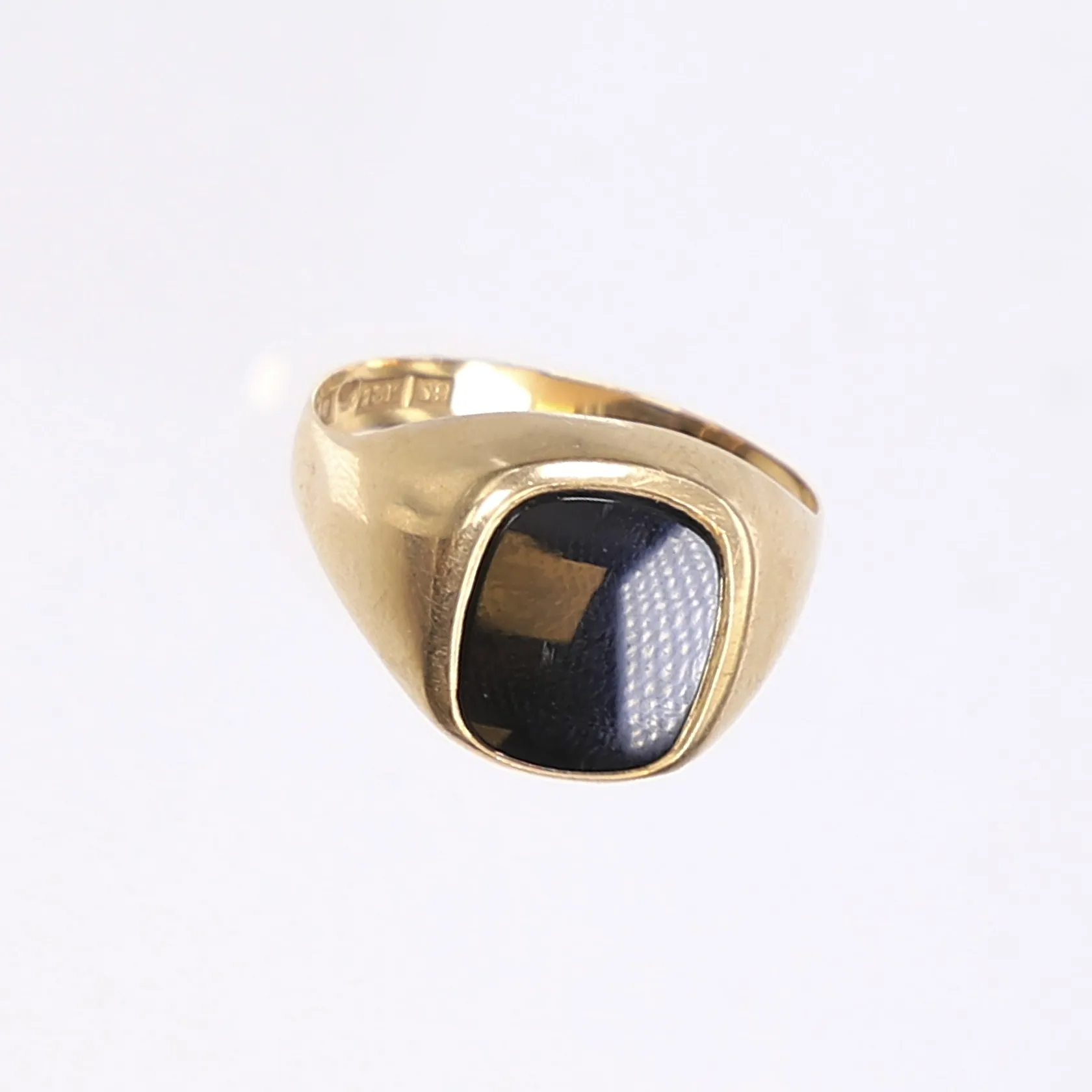 Ring med svart sten, stl 21¾, bredd 3-15mm, tillv. Bengt Hallberg, 18K Vikt: 5,3 g.