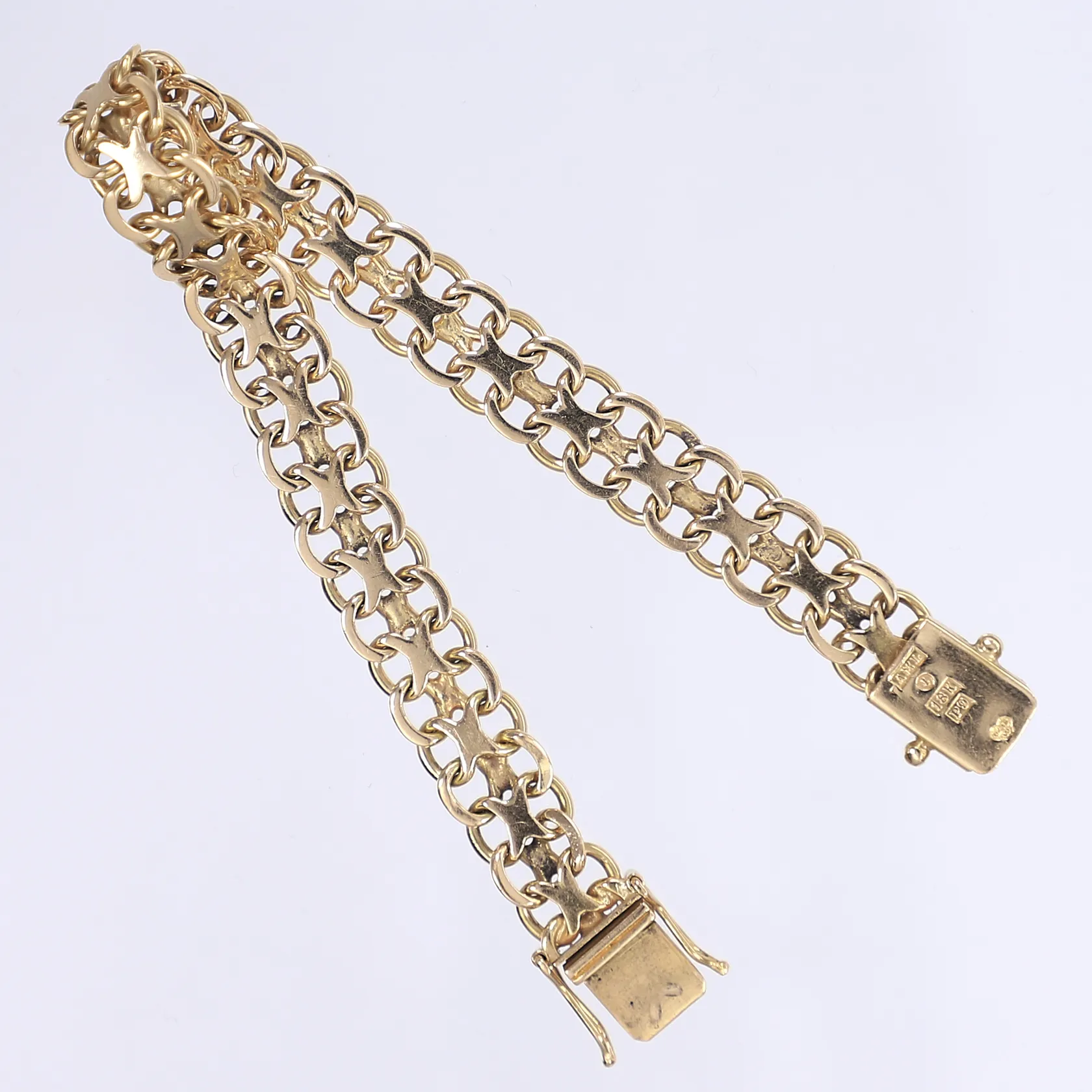 Armband, x-länk, 19cm, bredd 10mm, något skeva länkar, 18K Vikt: 21,8 g.