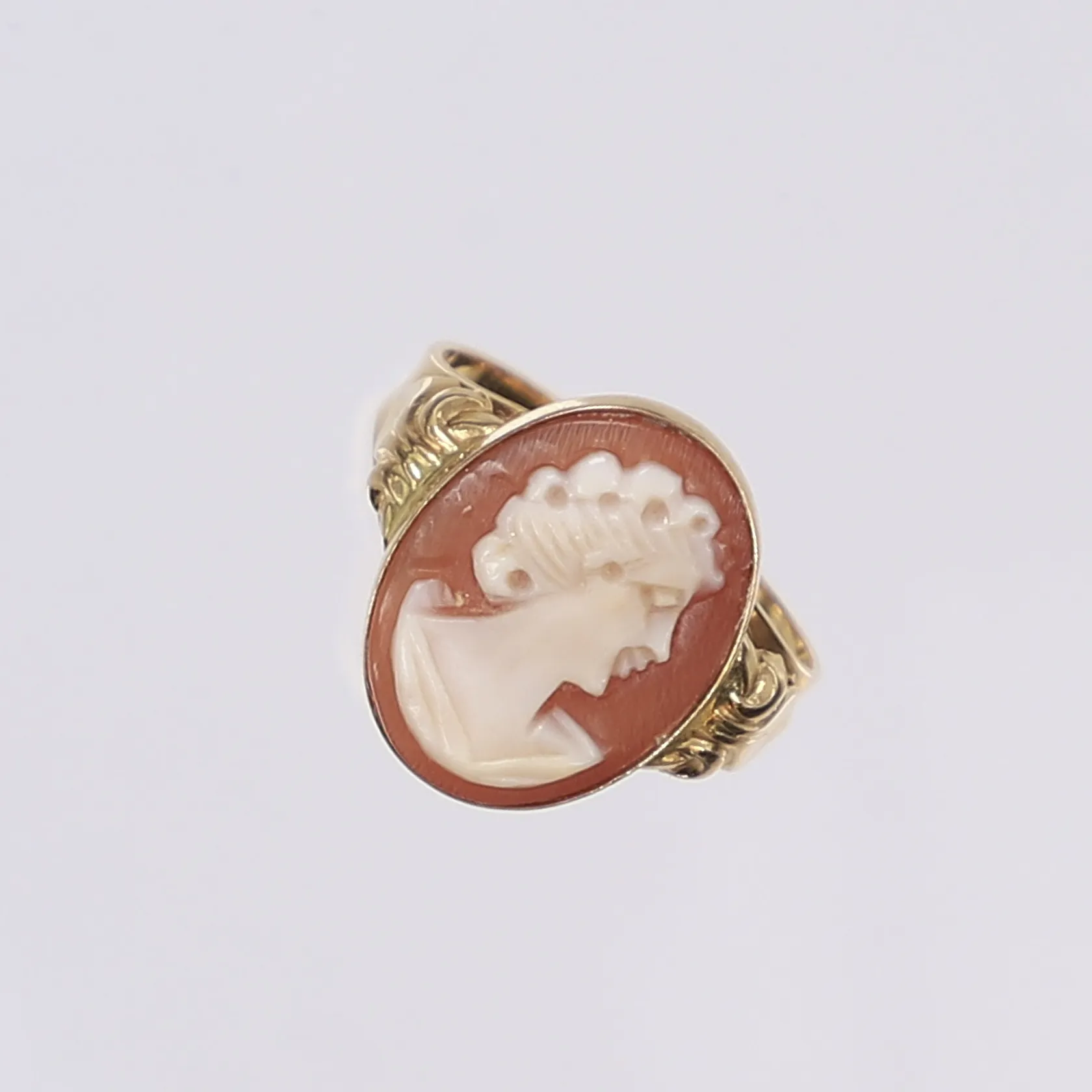 Ring med camé, stl 17¼, bredd 2-16mm, tillv. Ceson, något ojämn skena, 18K Vikt: 3,7 g.
