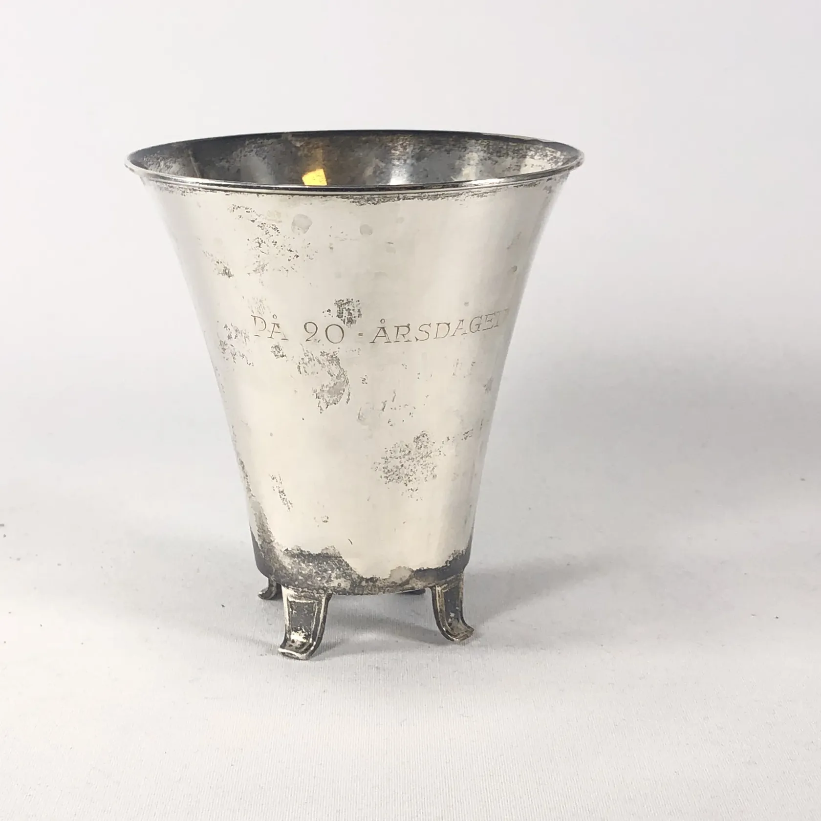 Pokal, 13cm, hög, gravyr, silver 830/1000 Vikt: 150 g.