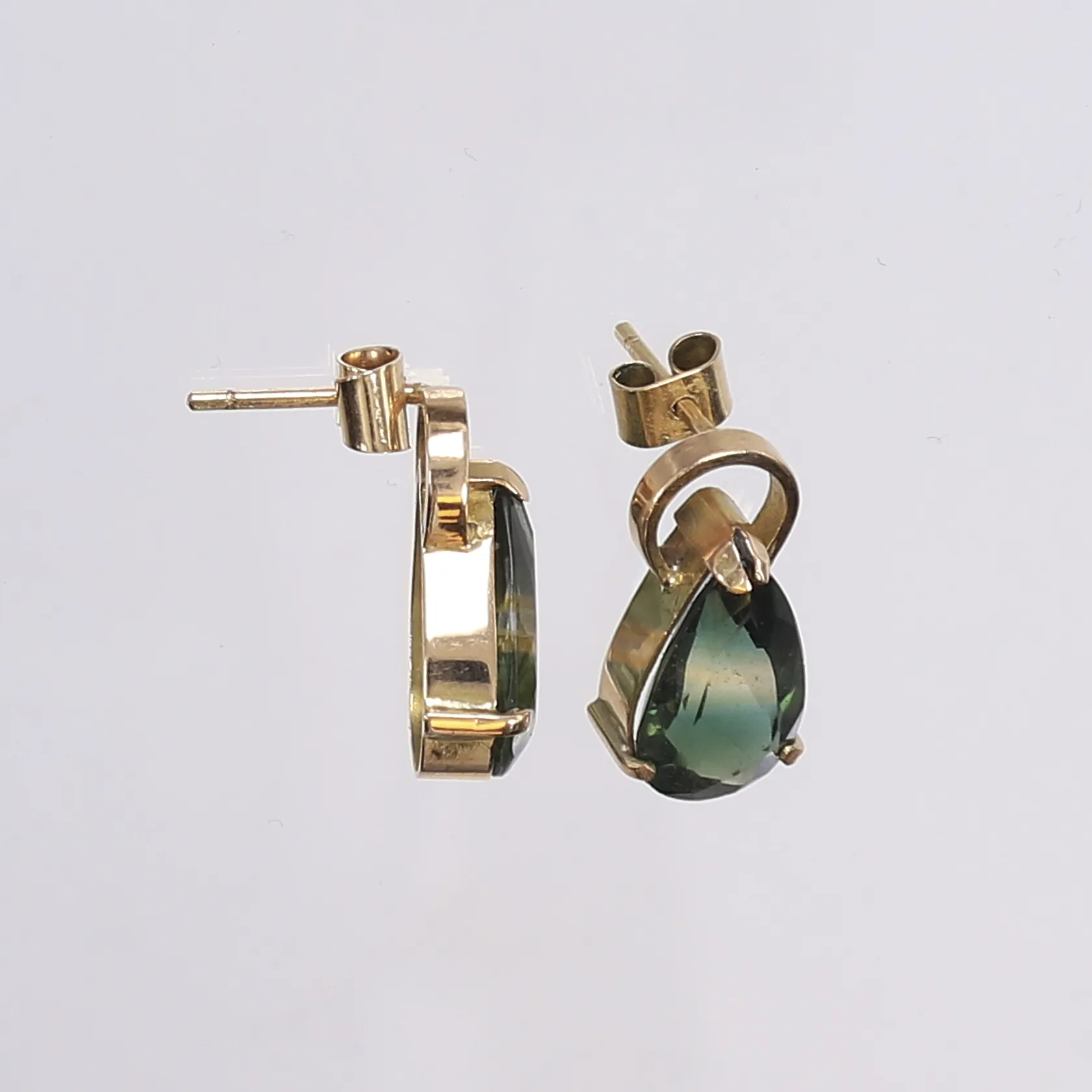 Ett par örhängen med gröngula stenar troligen glas, nagg, 20x10mm, 18K Bruttovikt 5,3g Vikt: 5,3 g.