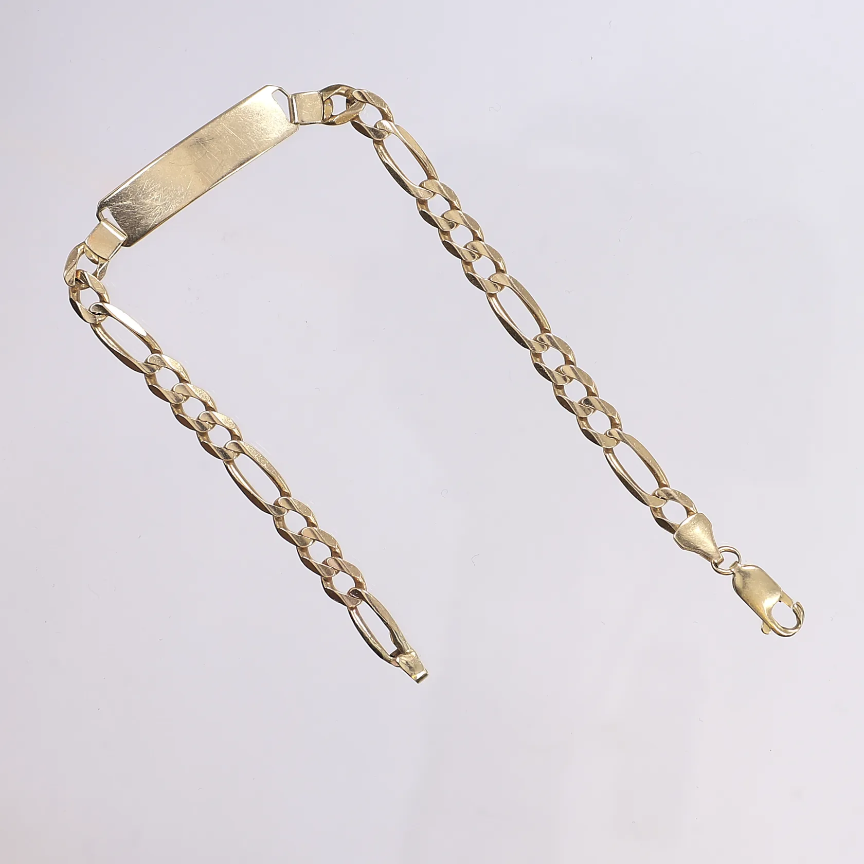 Armband Figaro med platta, 22cm, bredd 6-8mm, 14K Vikt: 11,1 g.