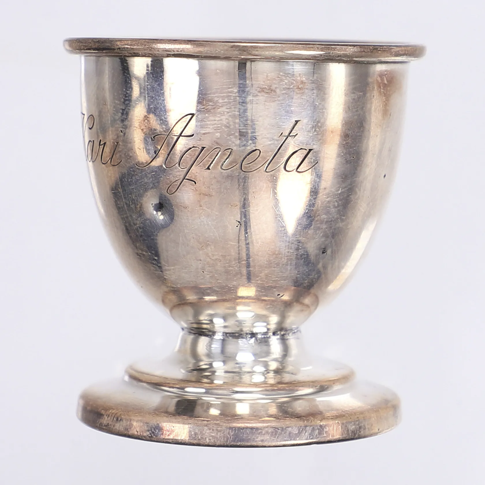 Äggkopp, höjd 5cm, bucklig, gravyr, silver 830/1000 Vikt: 21,7 g.