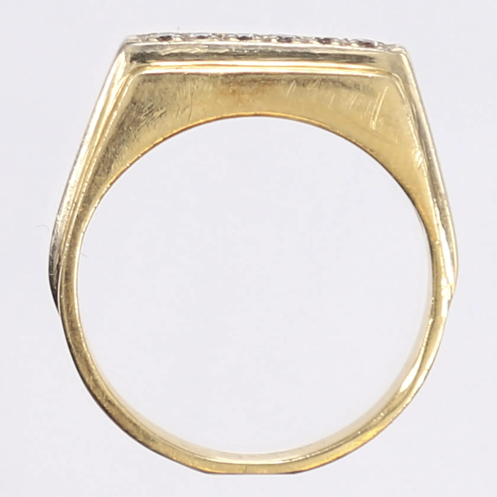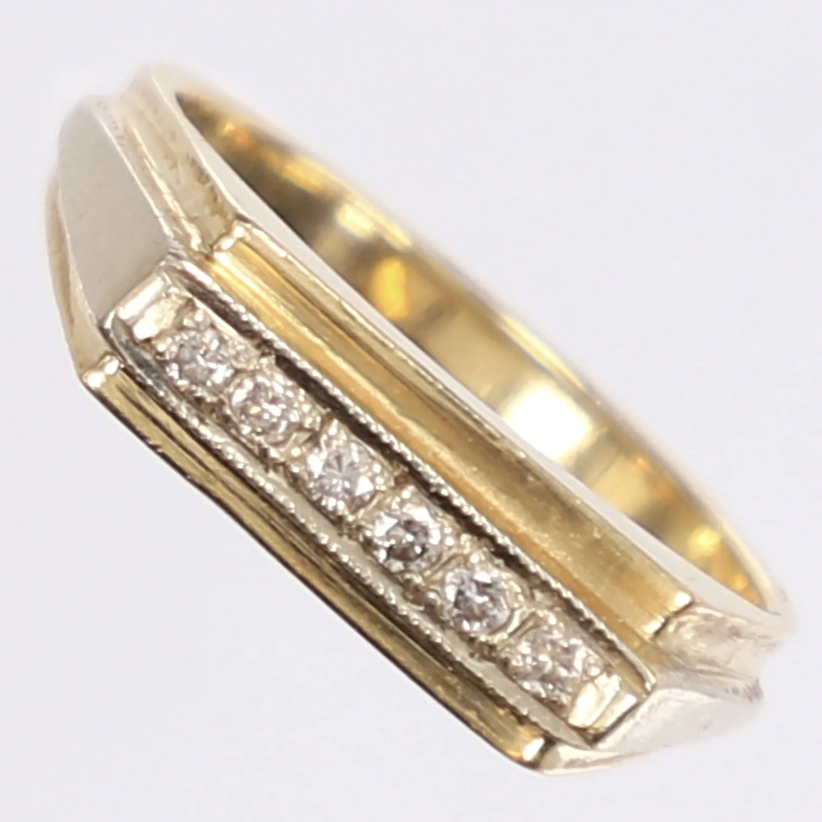 Ring med diamanter6x ca 0,02ct, stl 19¼, bredd 2-6mm, sovjetiska stämplar på utsidan av skenan, 18K Vikt: 5,9 g.