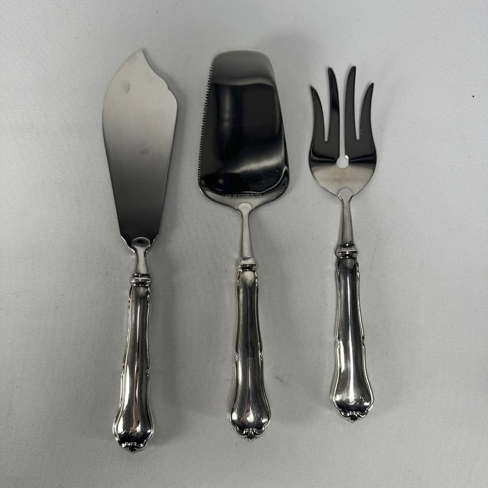 Parti uppläggningsbestick, 21-24mm, blad i rostfritt stål, fyllda handtag, silver 830/1000 Bruttovikt: 182,6g Vikt: 182,6 g.