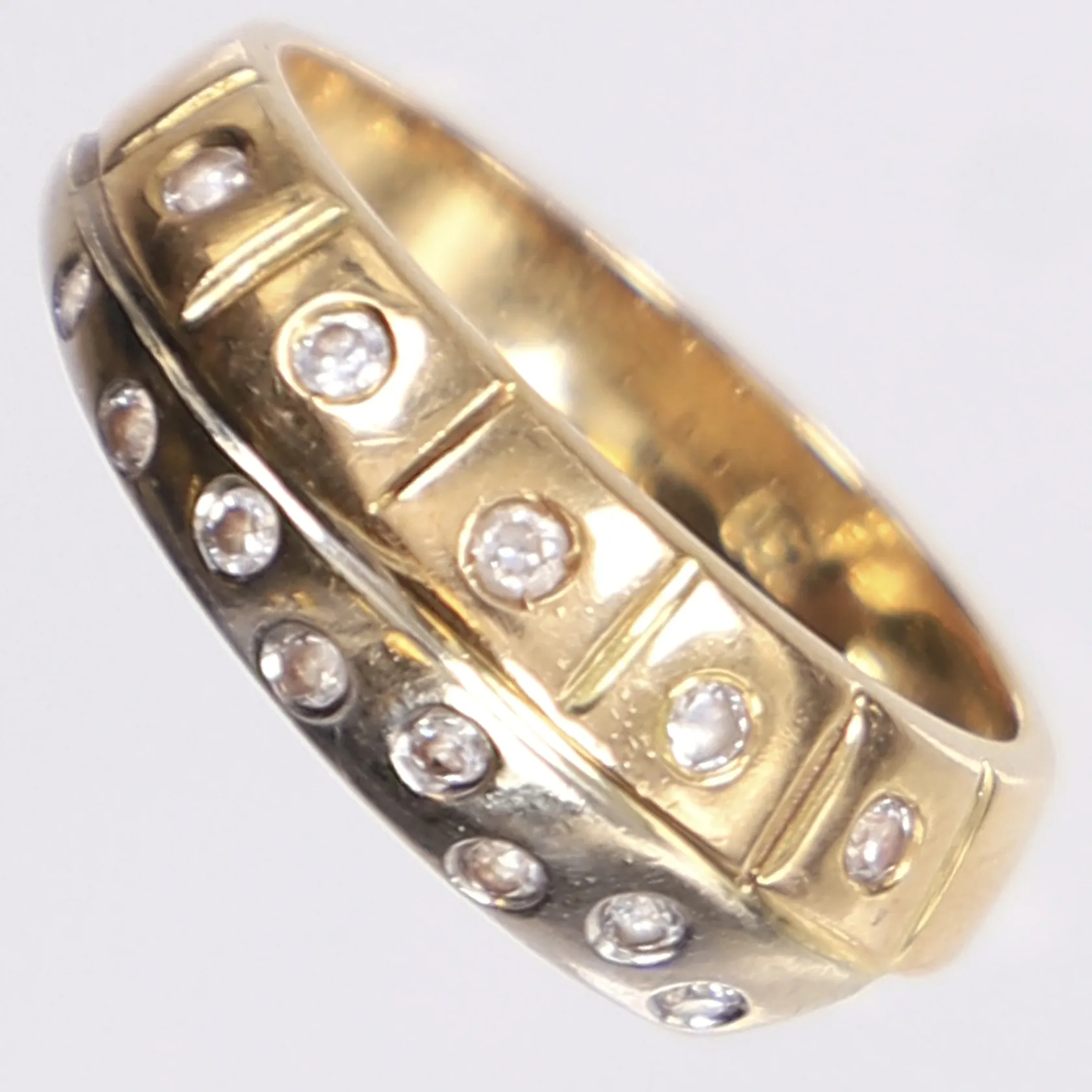 Ring med vita stenar, stl 17¾, bredd 3,5-7,5mm, 18K Vikt: 5,2 g.