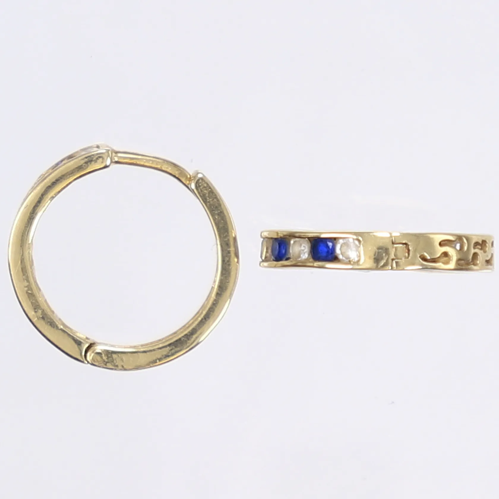 Ett par örhängen med vita och blåa stenar, Ø16mm, bredd 2,8mm, 14K bruttovikt 2,7 g Vikt: 2,7 g.