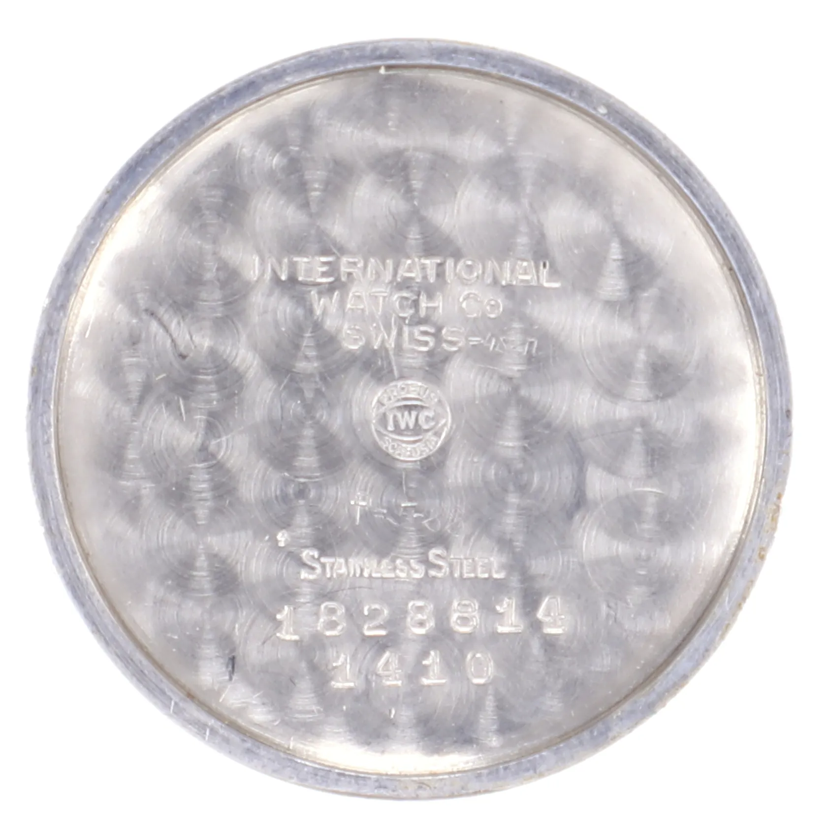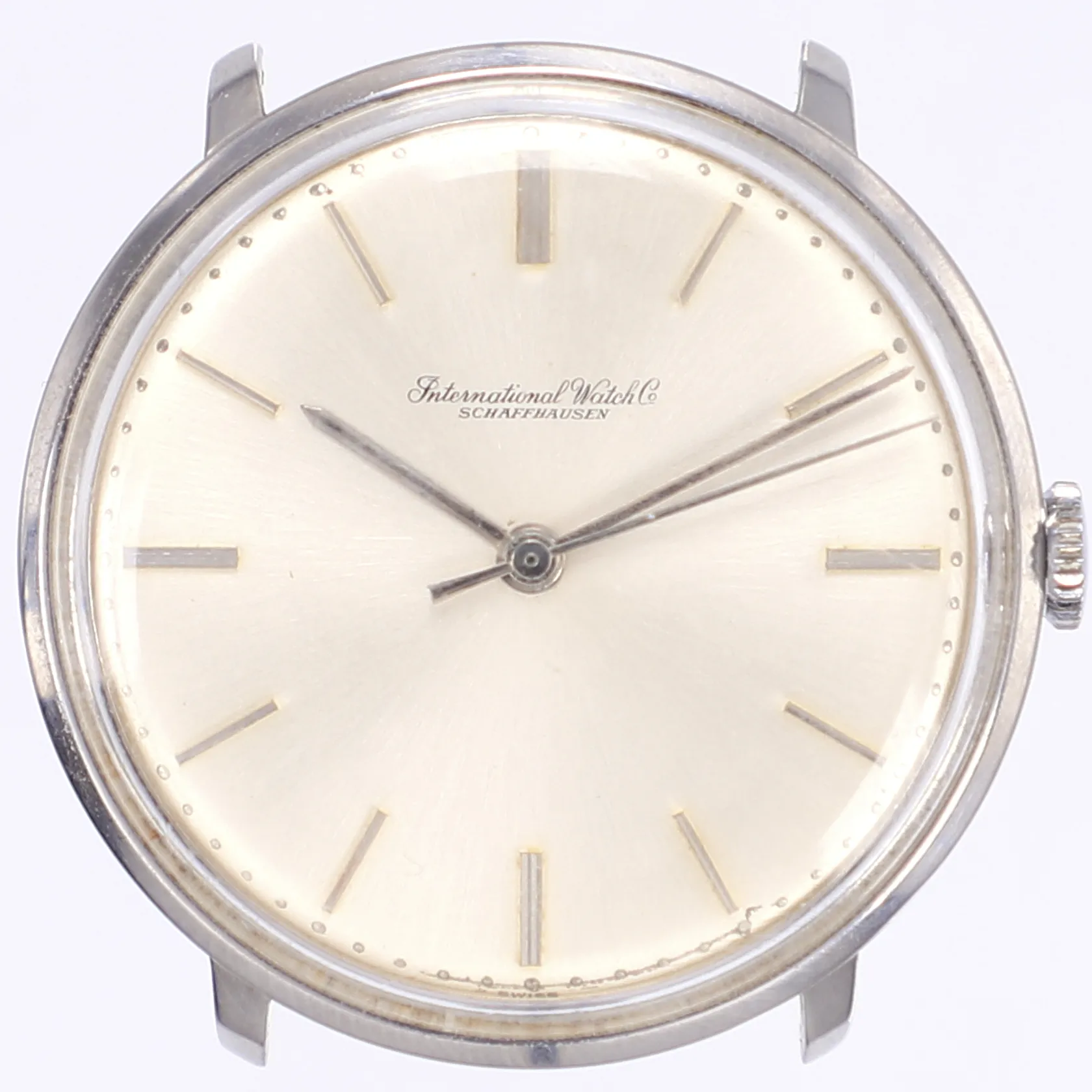 Herrur International Watch Company IWC, Ø34mm, manuell, ref 1410, boettnr 1828814, cal 402, verknr 1807484, 1960-tal, stål, silverfärgad sunburst-urtavla, slitage på urtavlan, repigt plexiglas, åldersbetingat slitage på boett, inget band