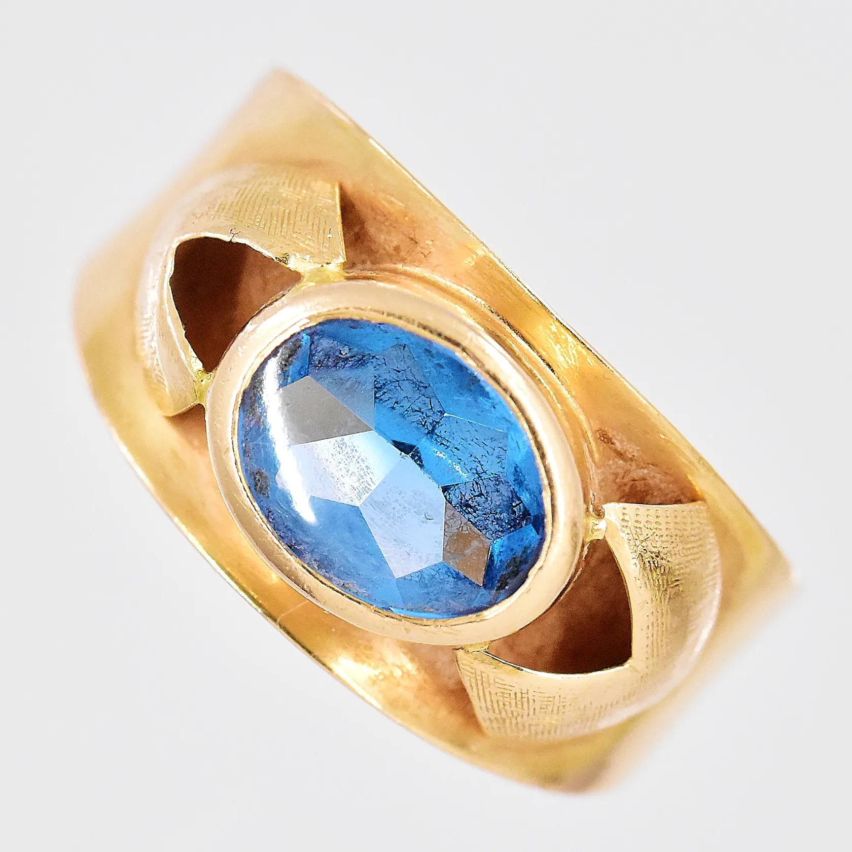 Ring, stl 19, blå sten repig, 18K Vikt: 3,1 g.