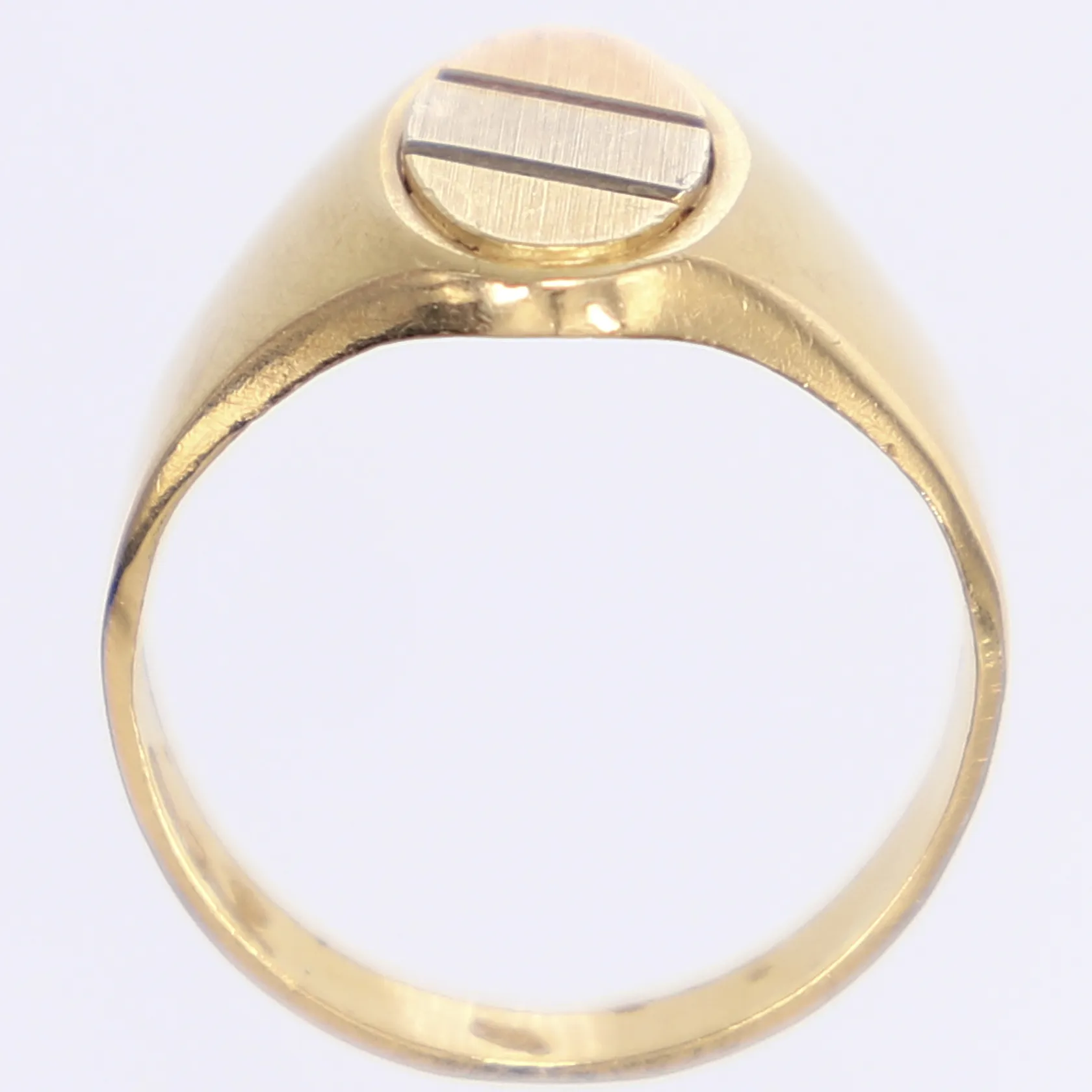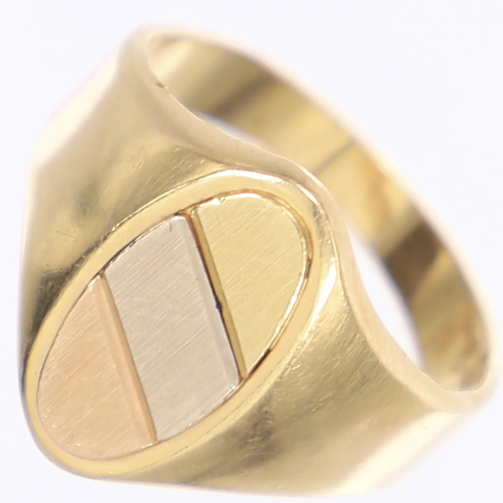 Klackring, trefärgad dekor, stl 19, bredd 3-16mm, slitage, 18K Vikt: 6,9 g.