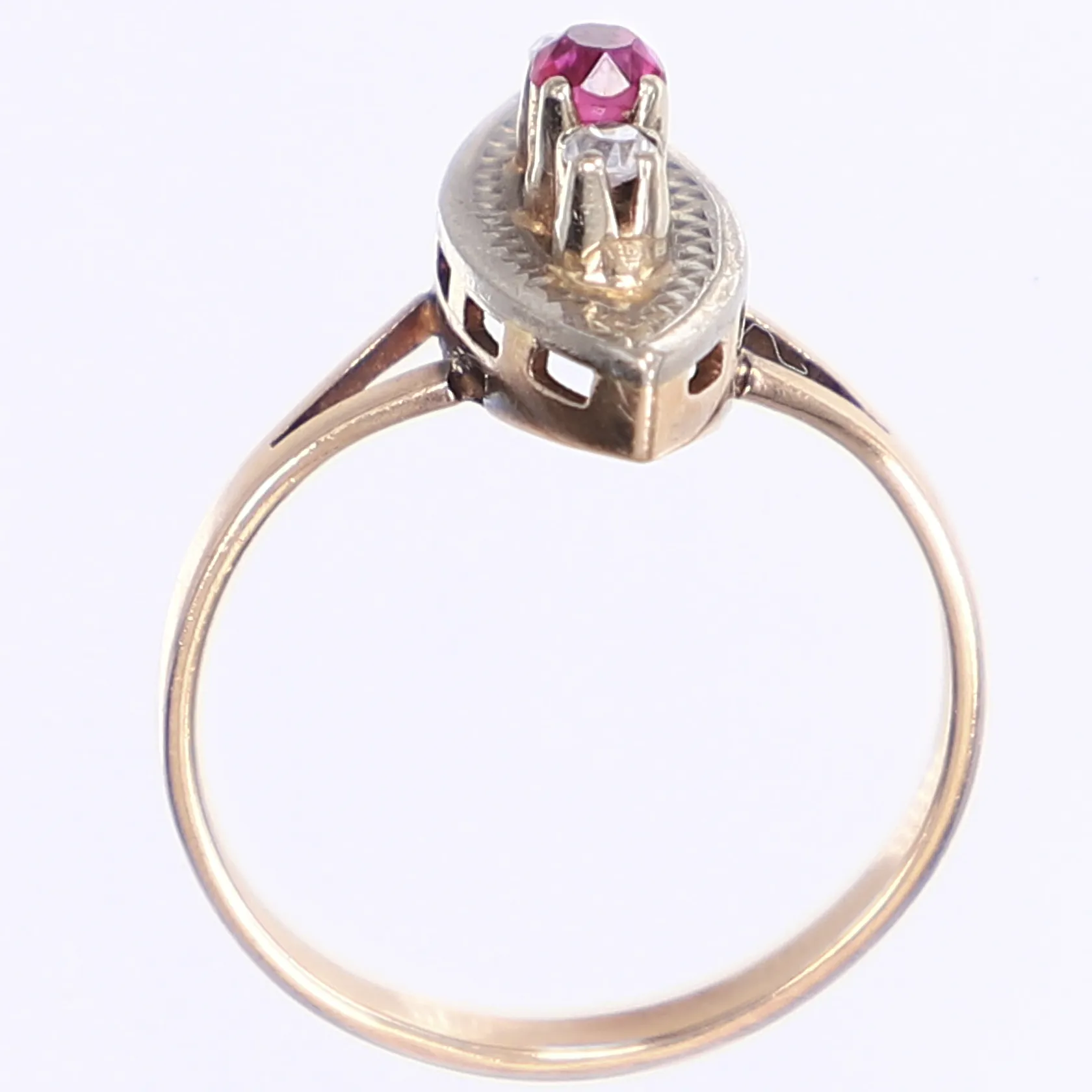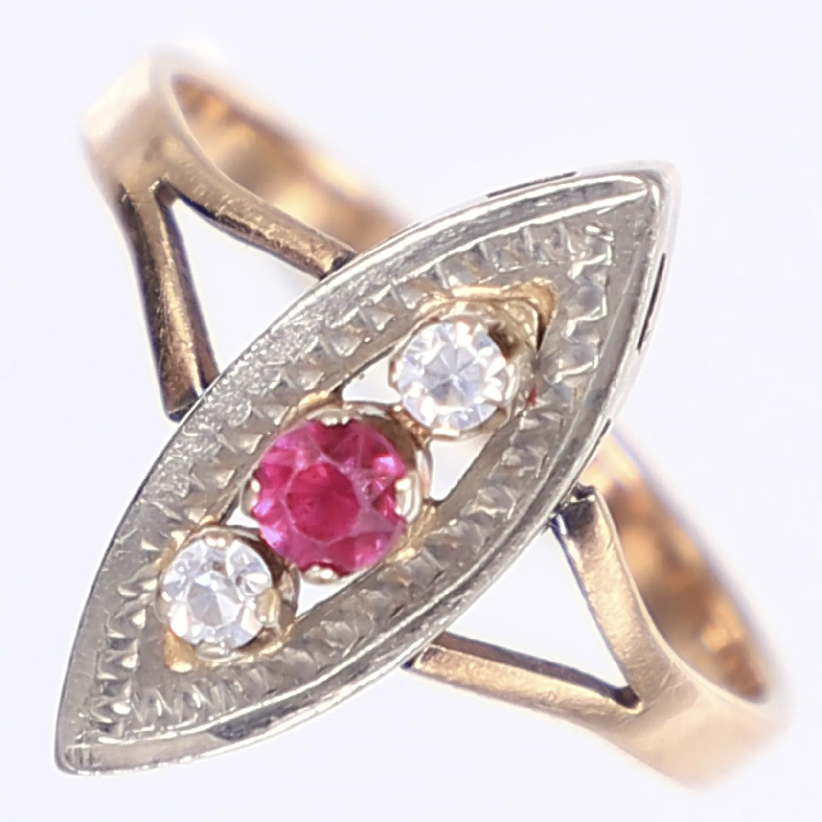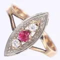 Ring med röd och vita stenar, stl 19¼, bredd 2-19mm, stämplad på utsidan av skenan, sovjetiska stämplar, 14K Vikt: 3,9 g.