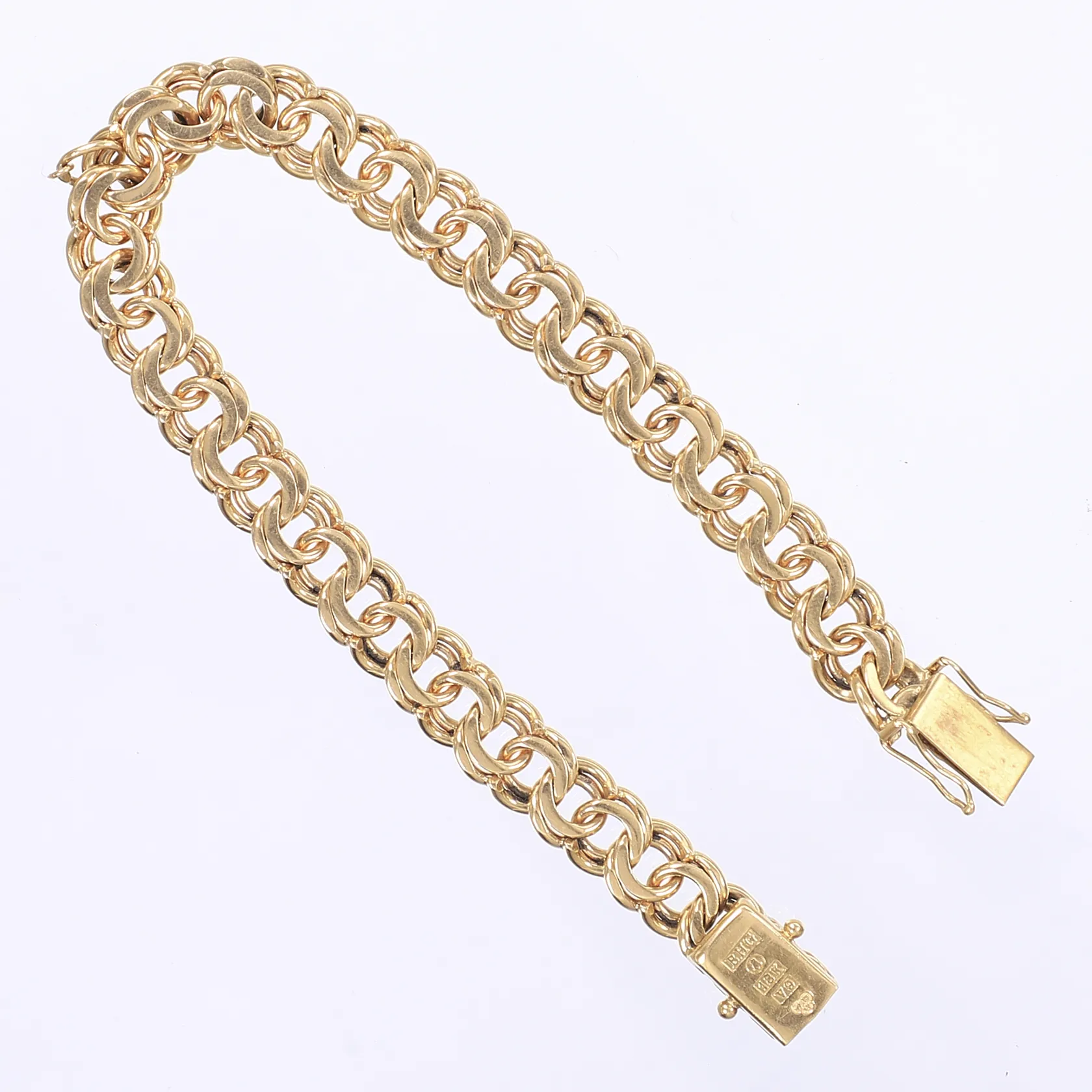 Armband Bismarck, 19cm, bredd 8mm, ögla för en berlock, svenska stämplar, 18K Vikt: 25,7 g.
