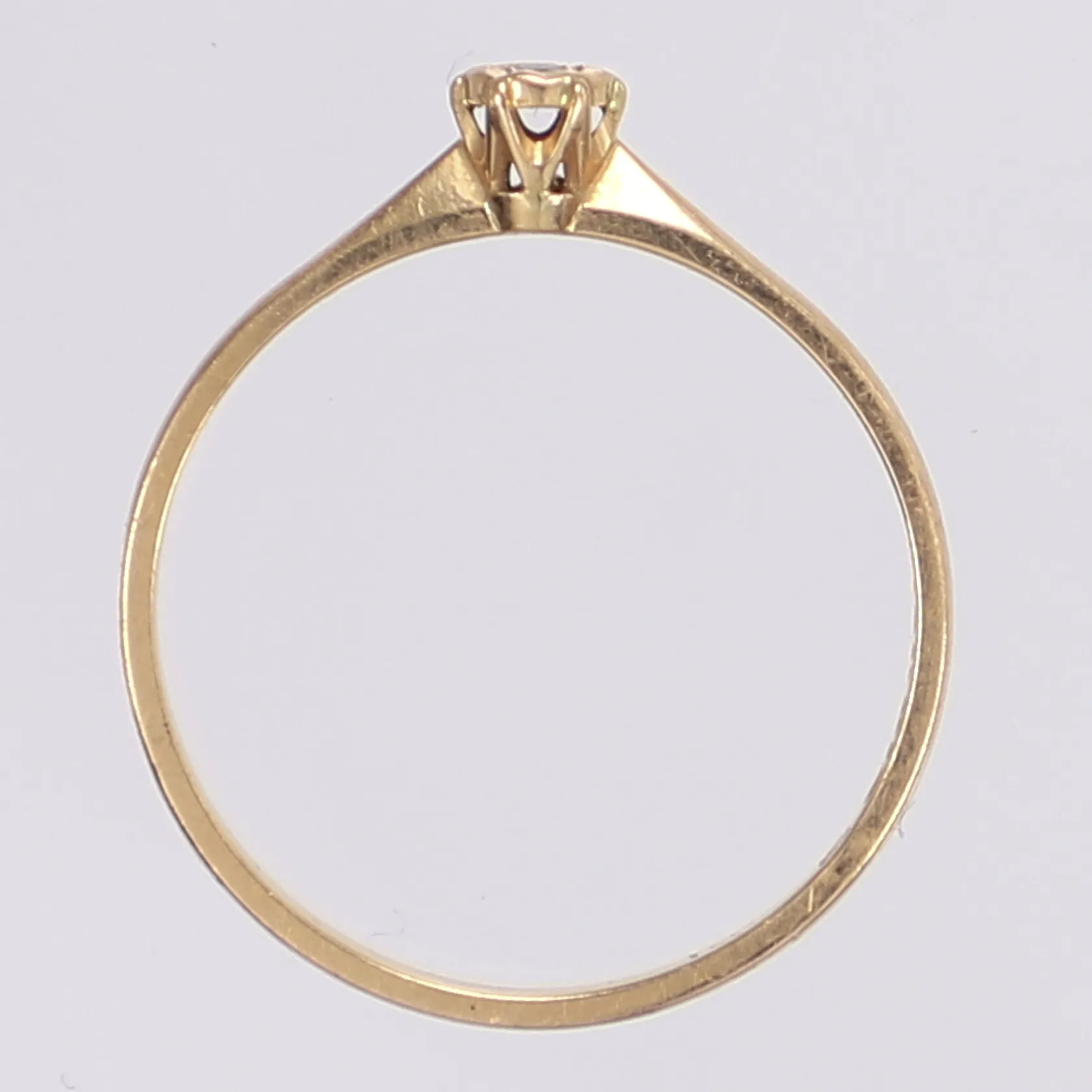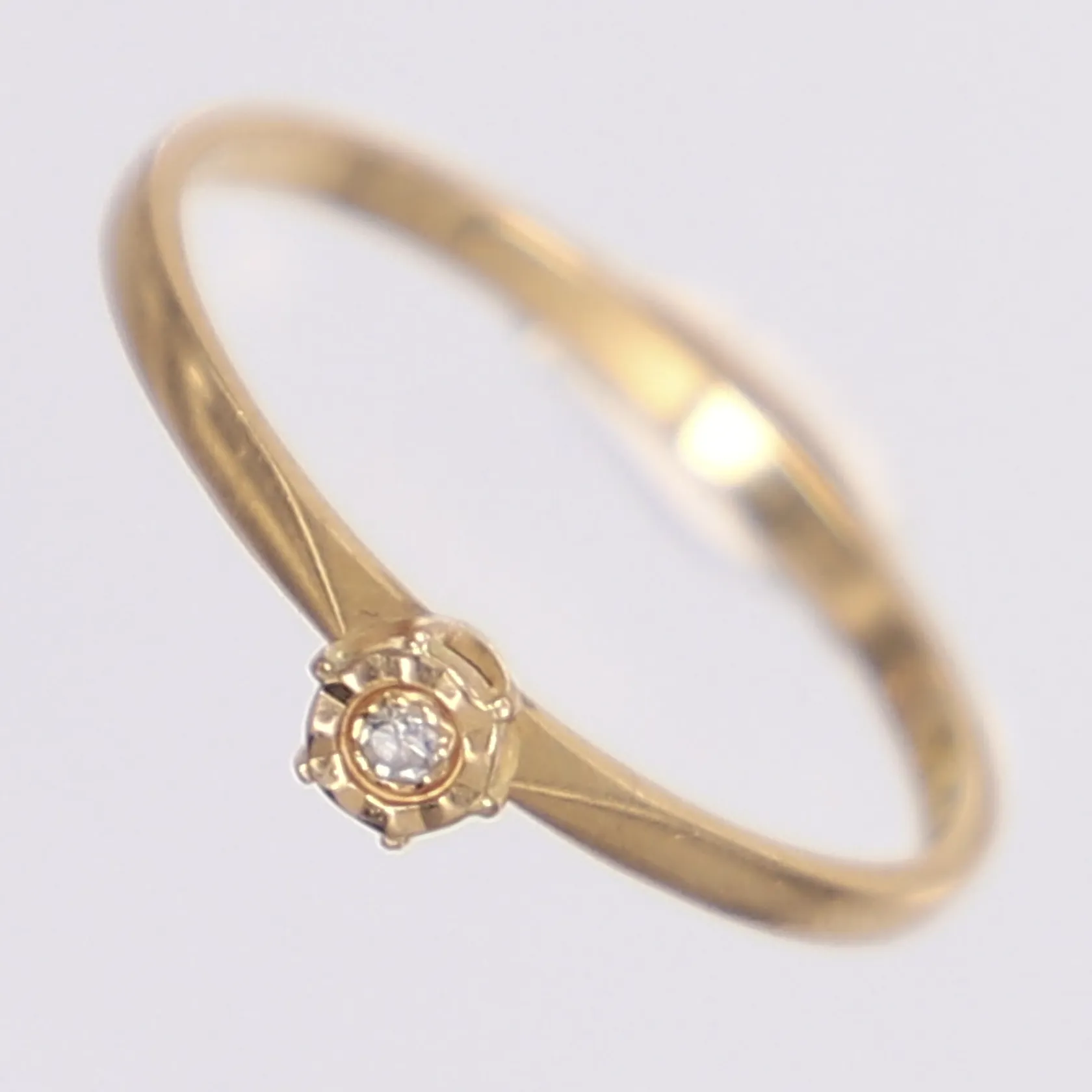 Ring med diamant 1x ca 0,01ct, stl 17, bredd 1-3mm, 18K Vikt: 1,2 g.