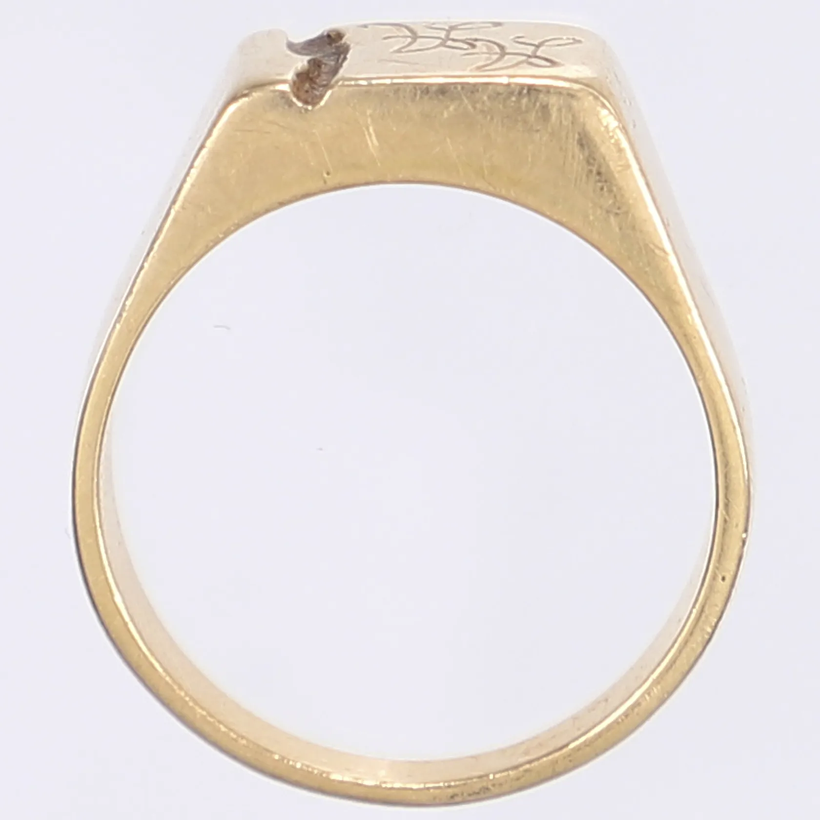 Klackring, monogram AA och hamrad detalj, stl 19¼, bredd 2,5-10mm, repig, 14K Vikt: 6,8 g.