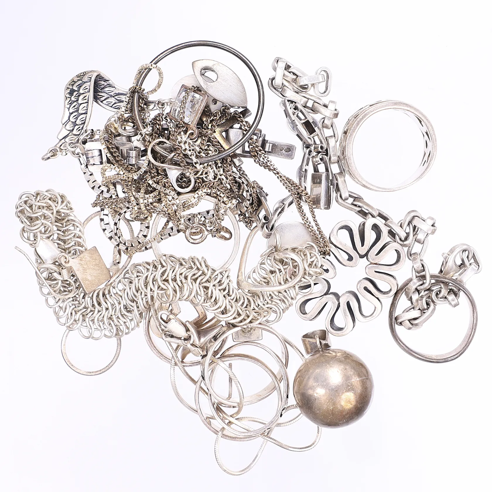 Diverse silver, delvis defekt, silver 830-925/1000 Vikt: 153 g.