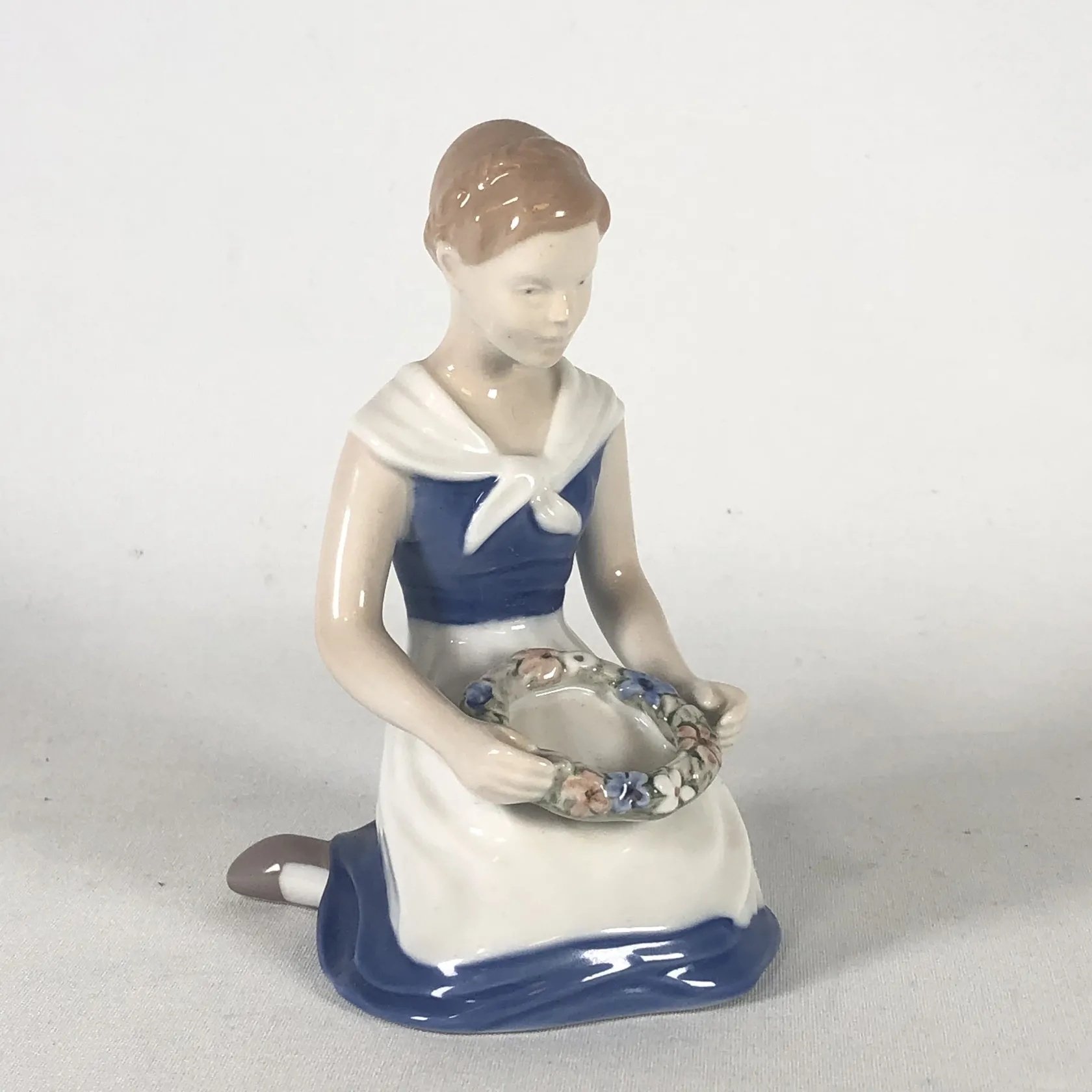 Figurin, flicka med blomkrans, höjd 14cm, Bing & Gröndahl 2345