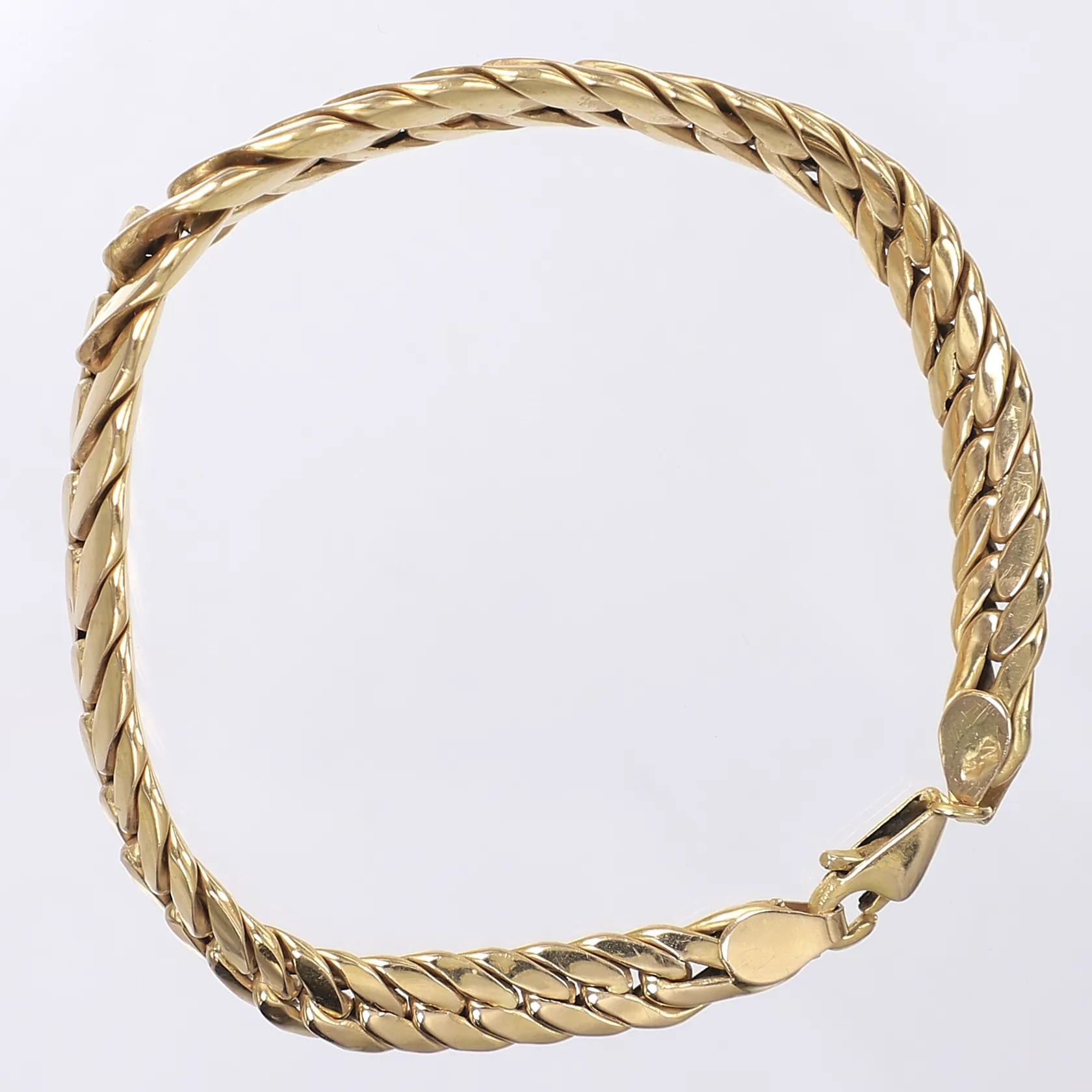 Armband doserad pansarlänk, längd 20cm, bredd 5-14mm, 18K Vikt: 17,3 g.