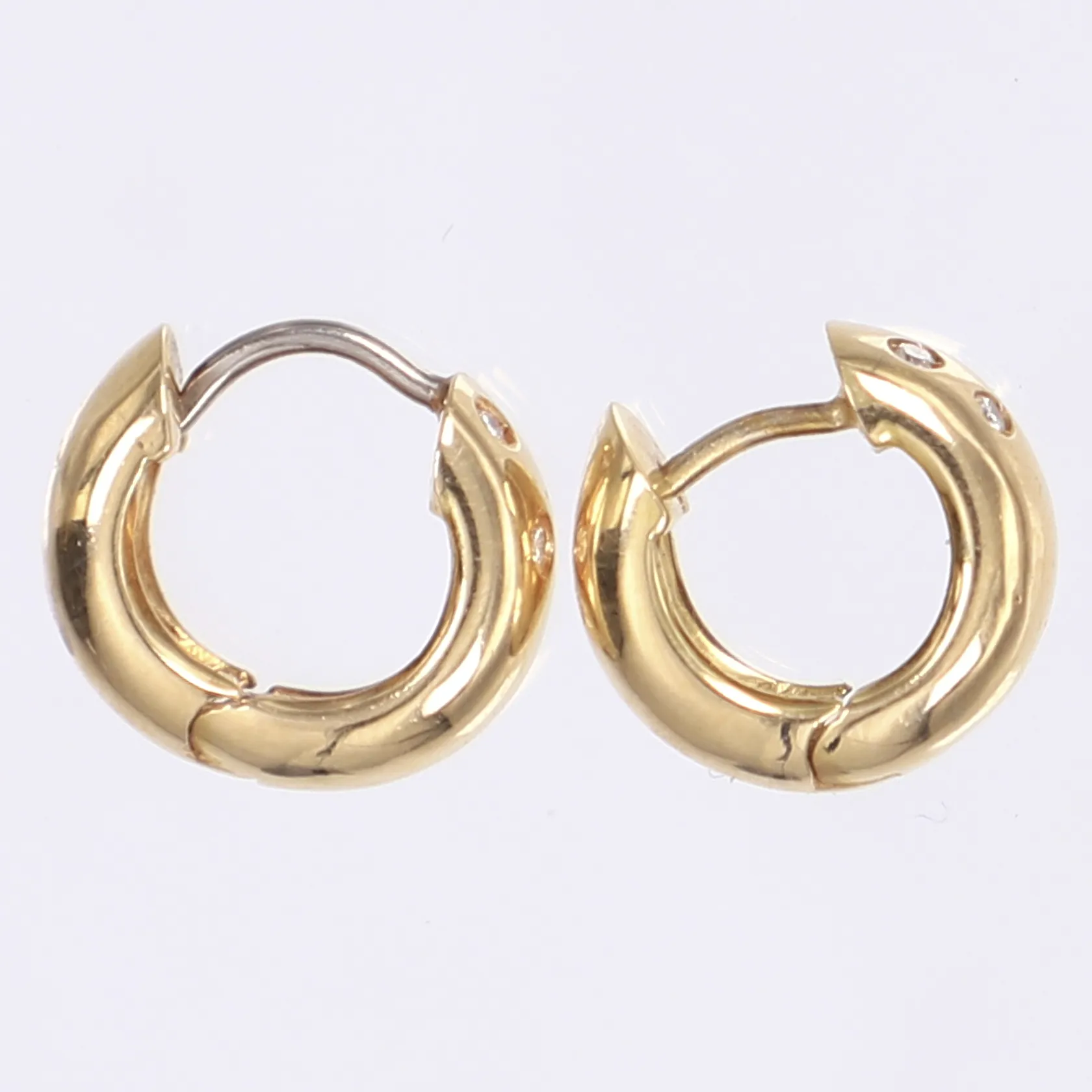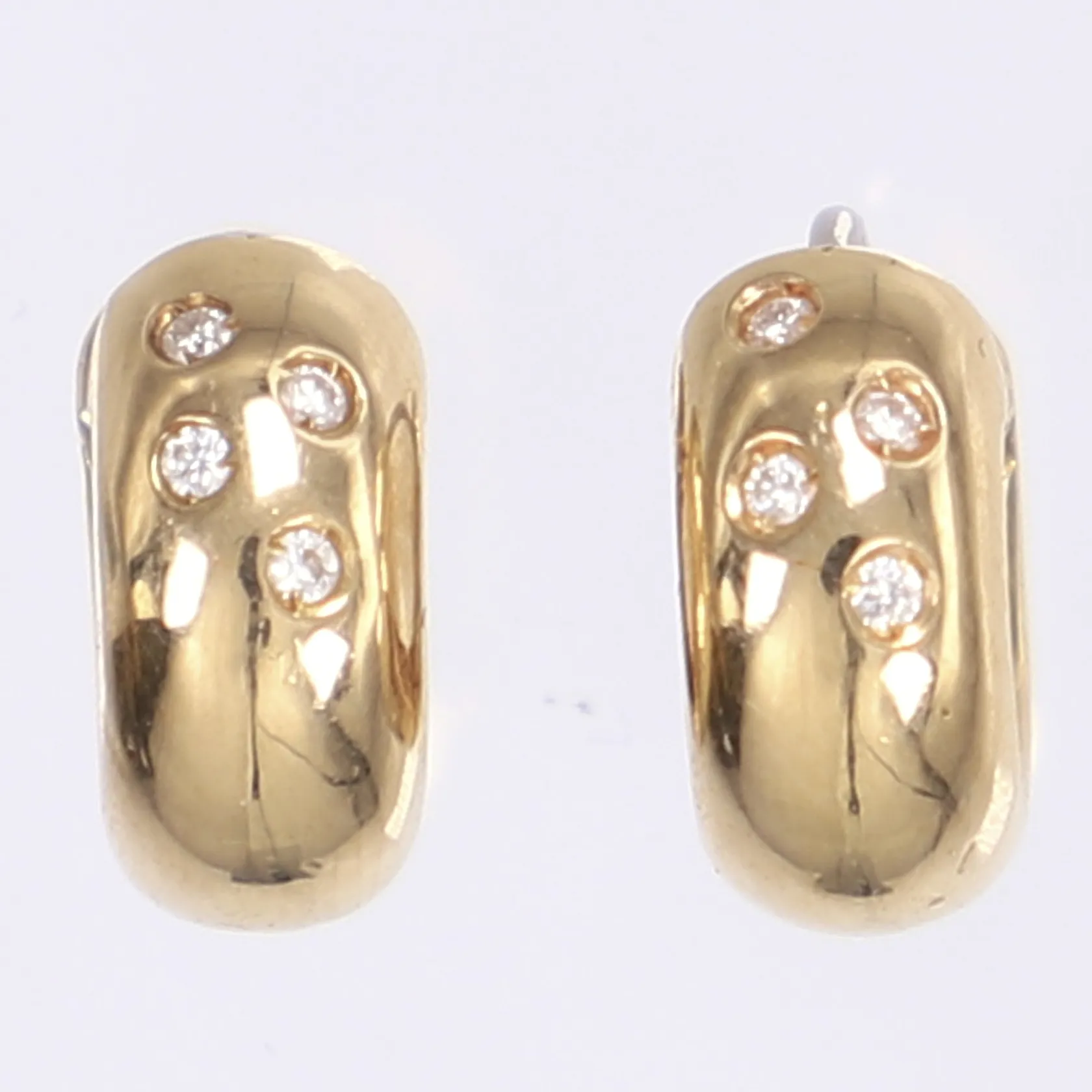 Ett par örhängen, creoler, med diamanter 8x ca 0,01ct, Ø13mm, bredd 5,5mm, ena stiftet utbytt ej guld, 18K Bruttovikt: 5,3g Vikt: 5,3 g.